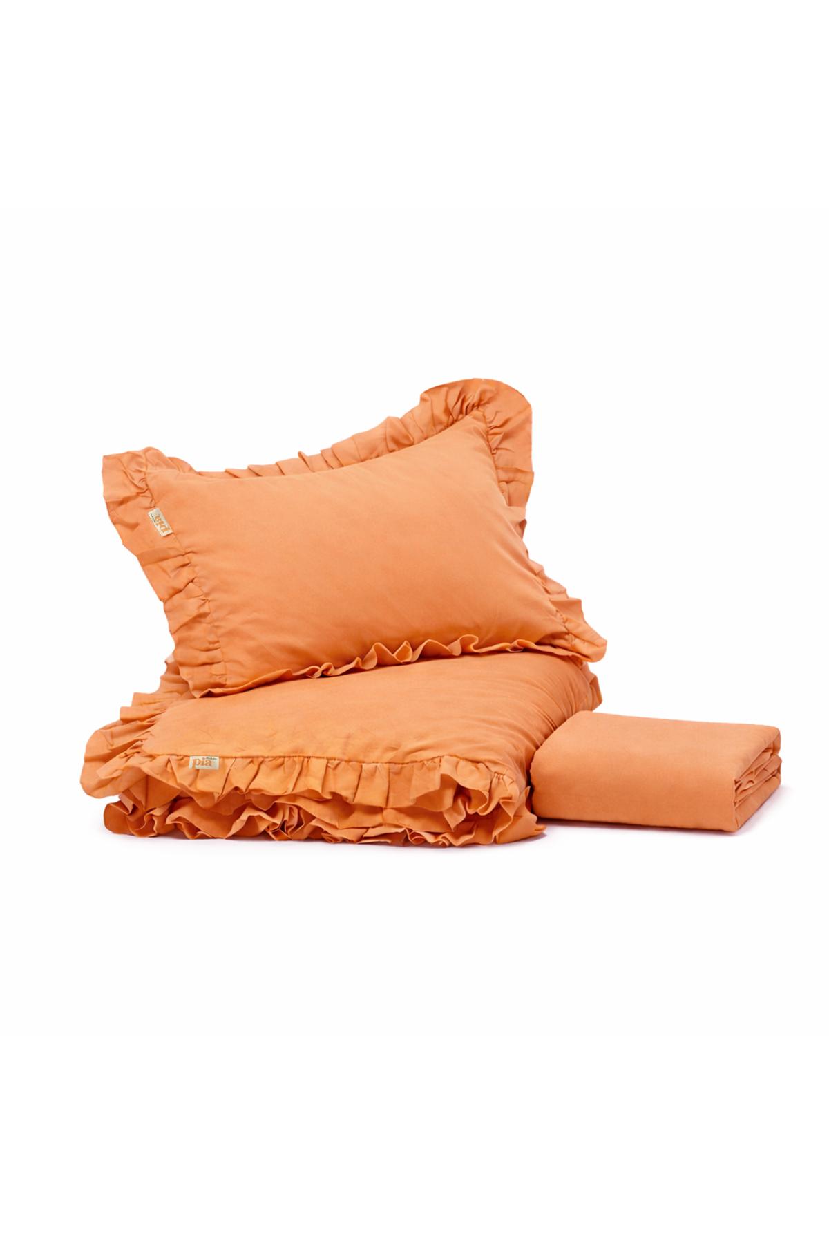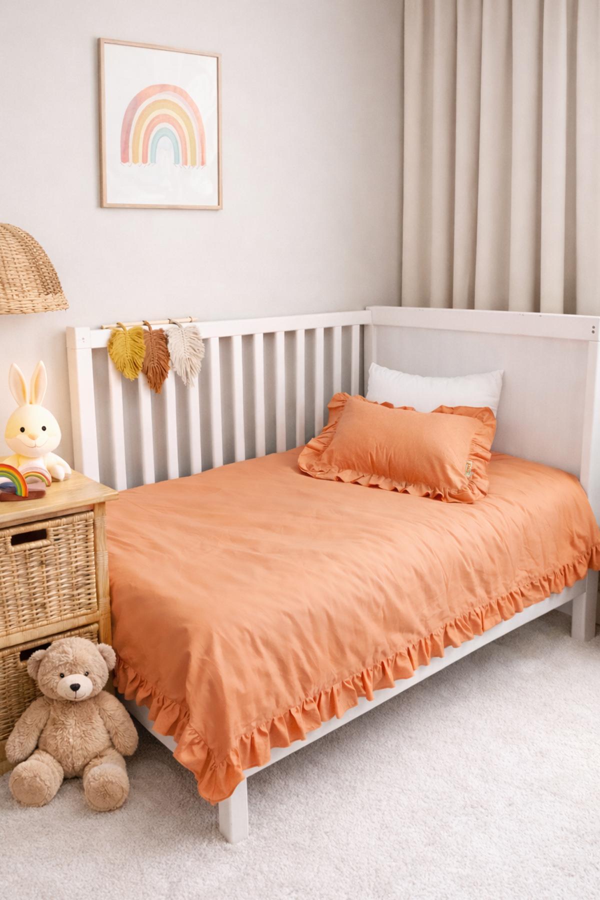 %100 Pamuk Farbalalı / Fırfırlı Nevresim Takımı Tarçın