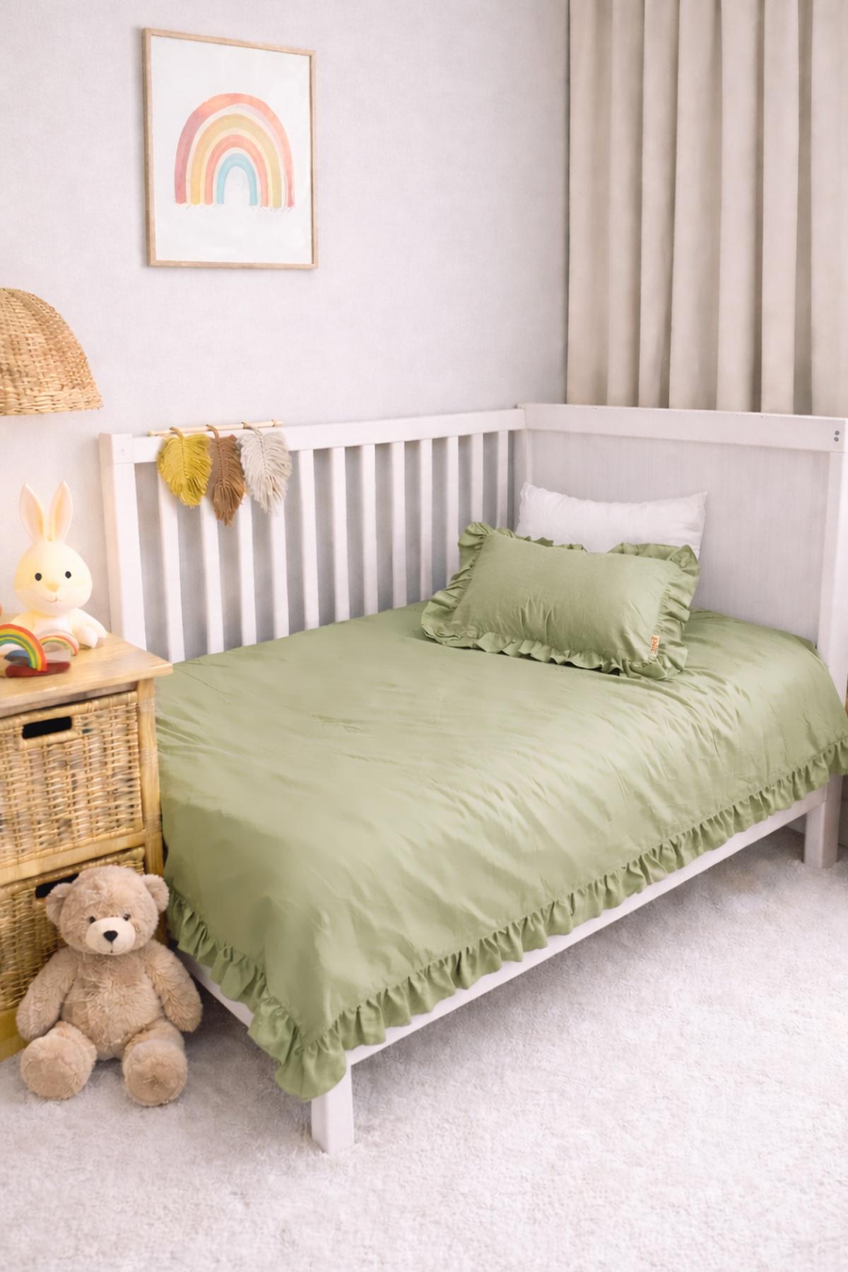 %100 Pamuk Farbalalı / Fırfırlı Nevresim Takımı Yeşil