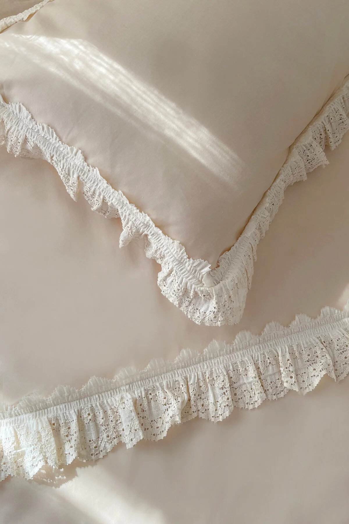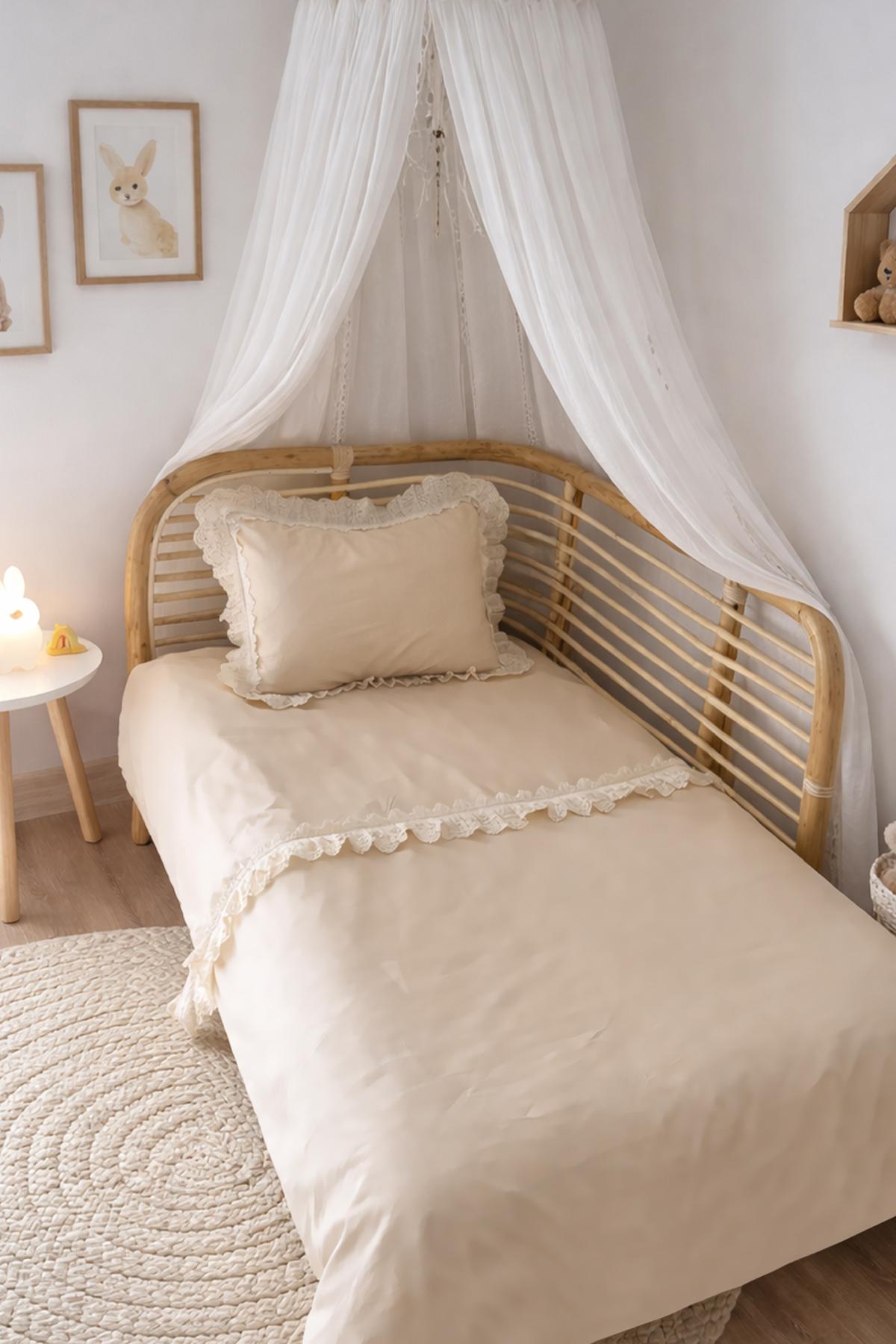 %100 Pamuk Fistolu / Fırfırlı Nevresim Takımı Bej