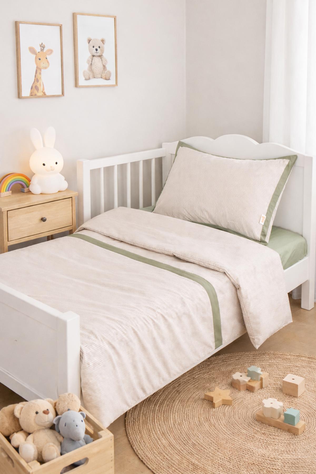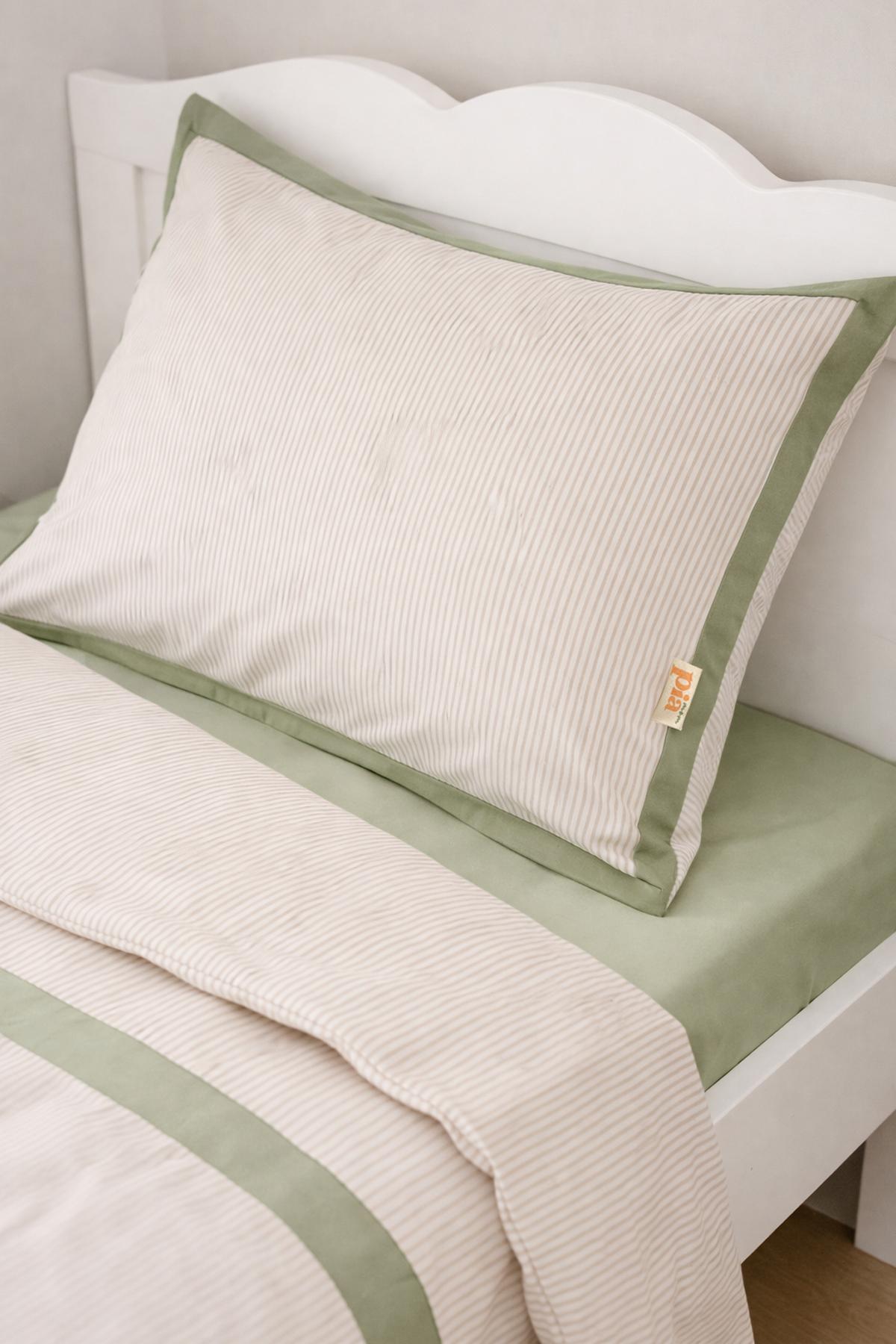 %100 Pamuk Yeşil Biyeli Nevresim Takımı