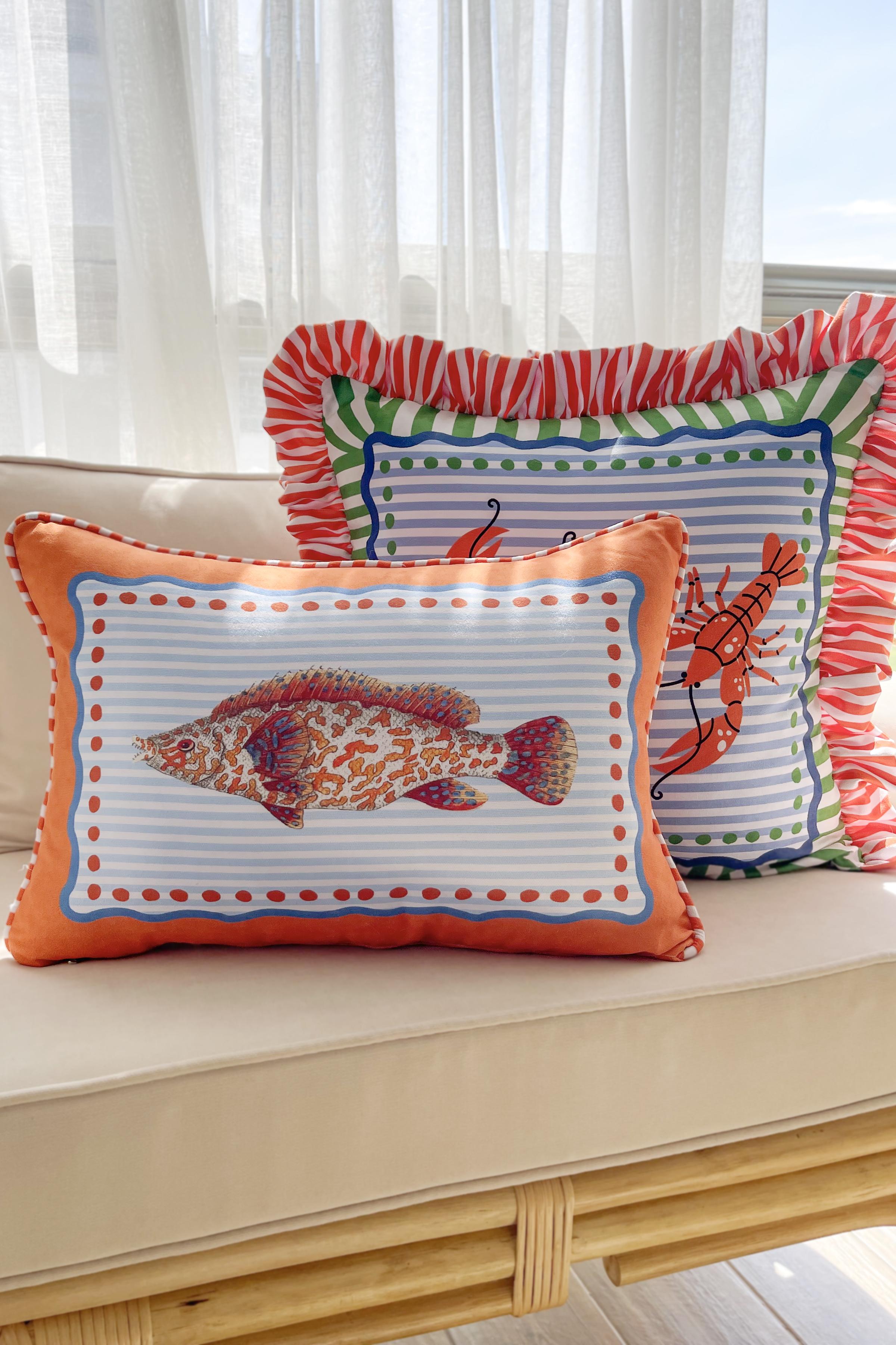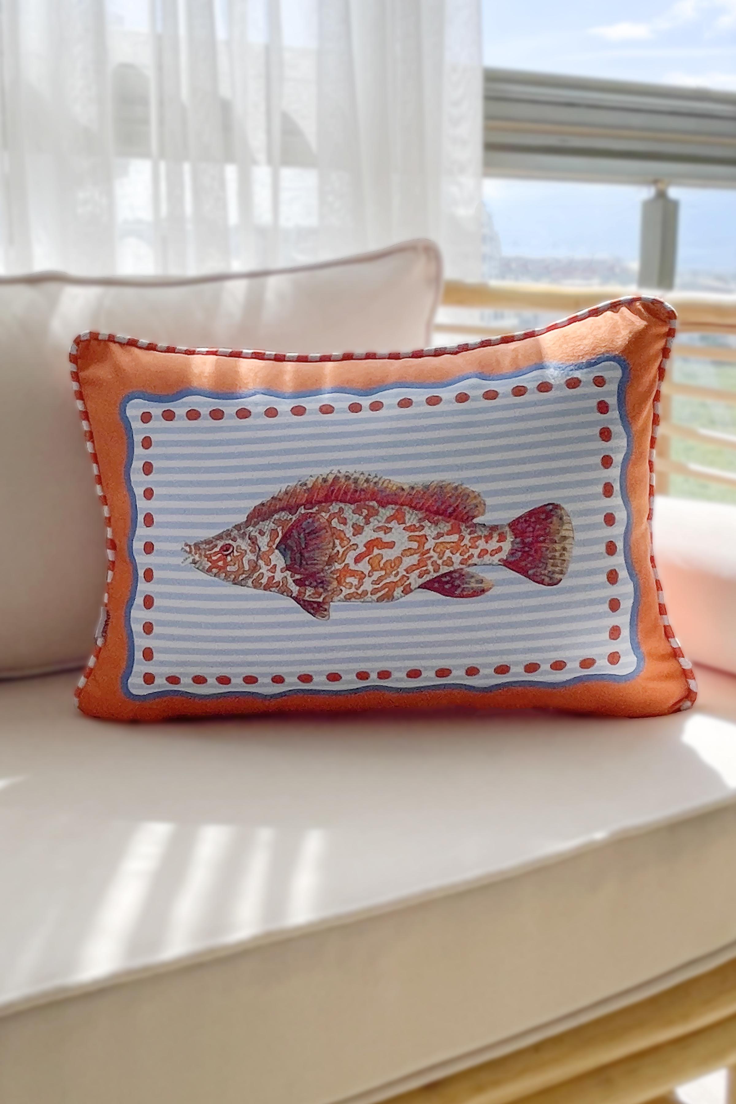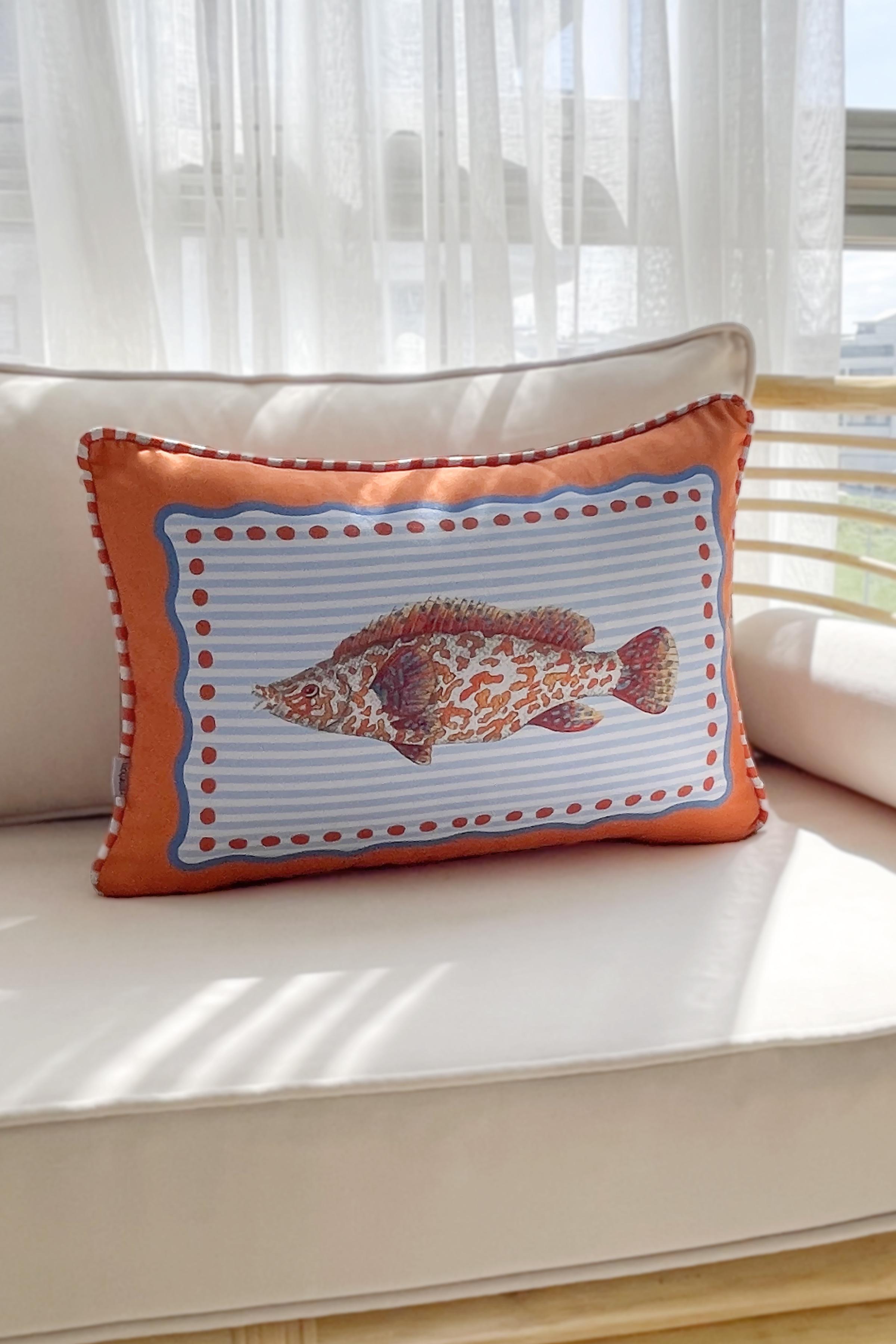 Balık Desenli Biyeli Kırlent