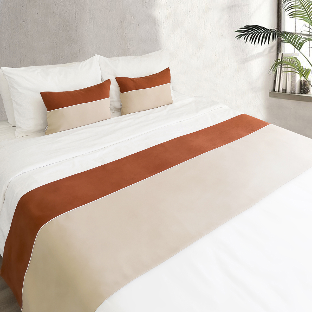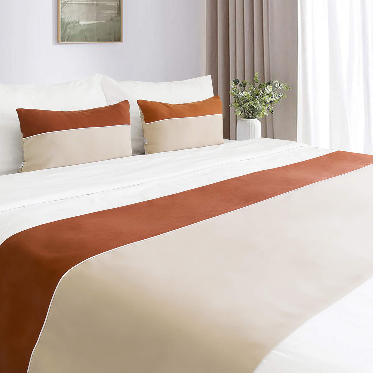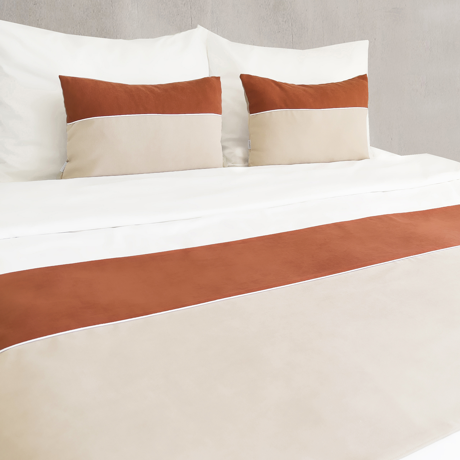 Çift Kişilik Yatak Runner Seti Biyeli Krem/Tarçın