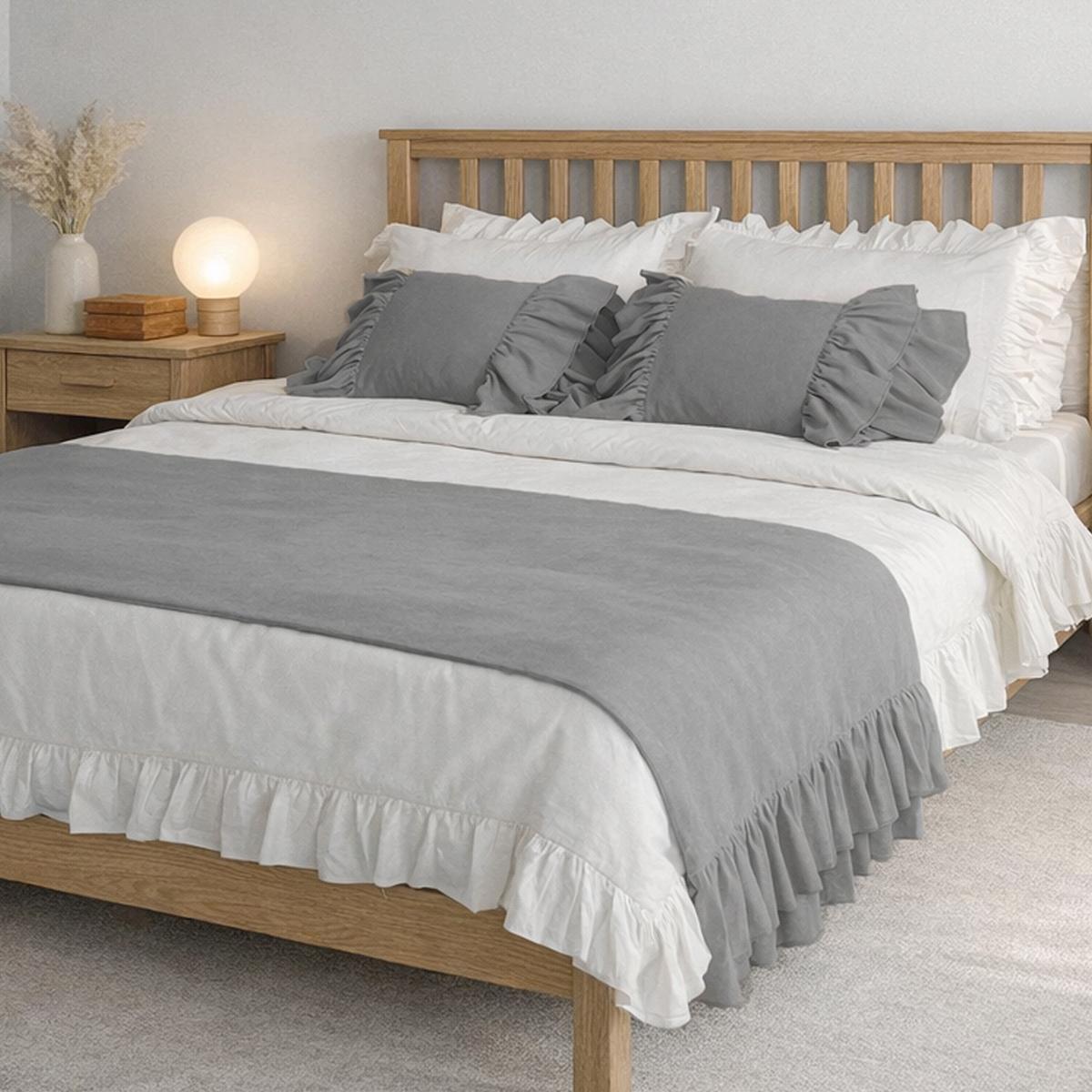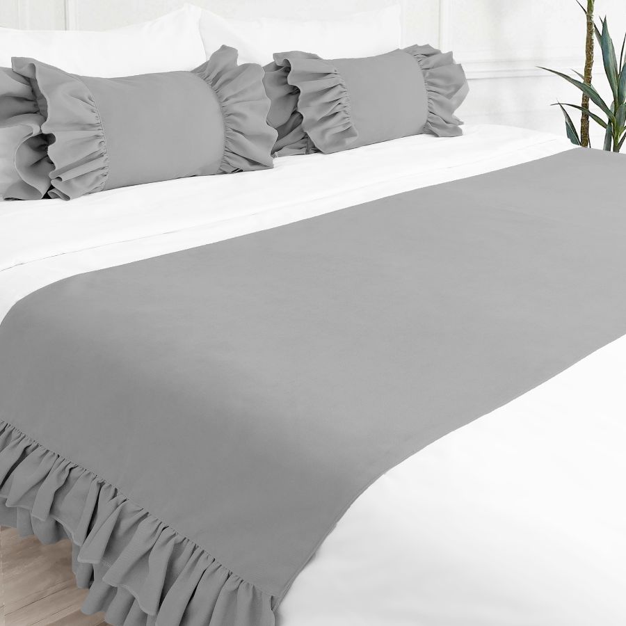 Yatak runner çift kişilik 70x240 cm ölçüsündedir. Fırfır detayları vardır.