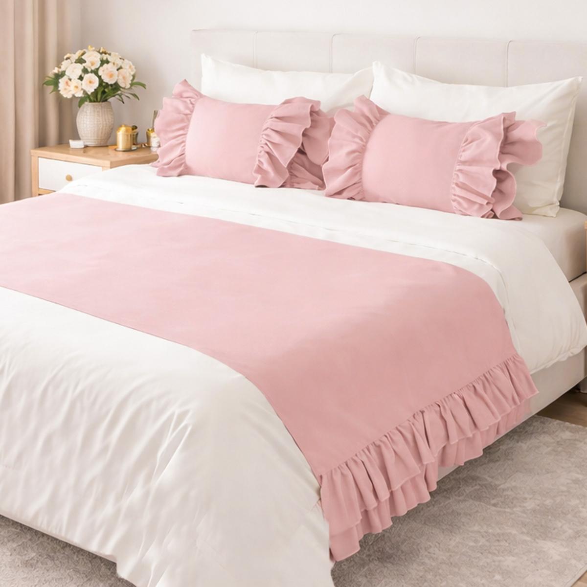 Çift Kişilik Yatak Runner Seti Pembe Fırfırlı