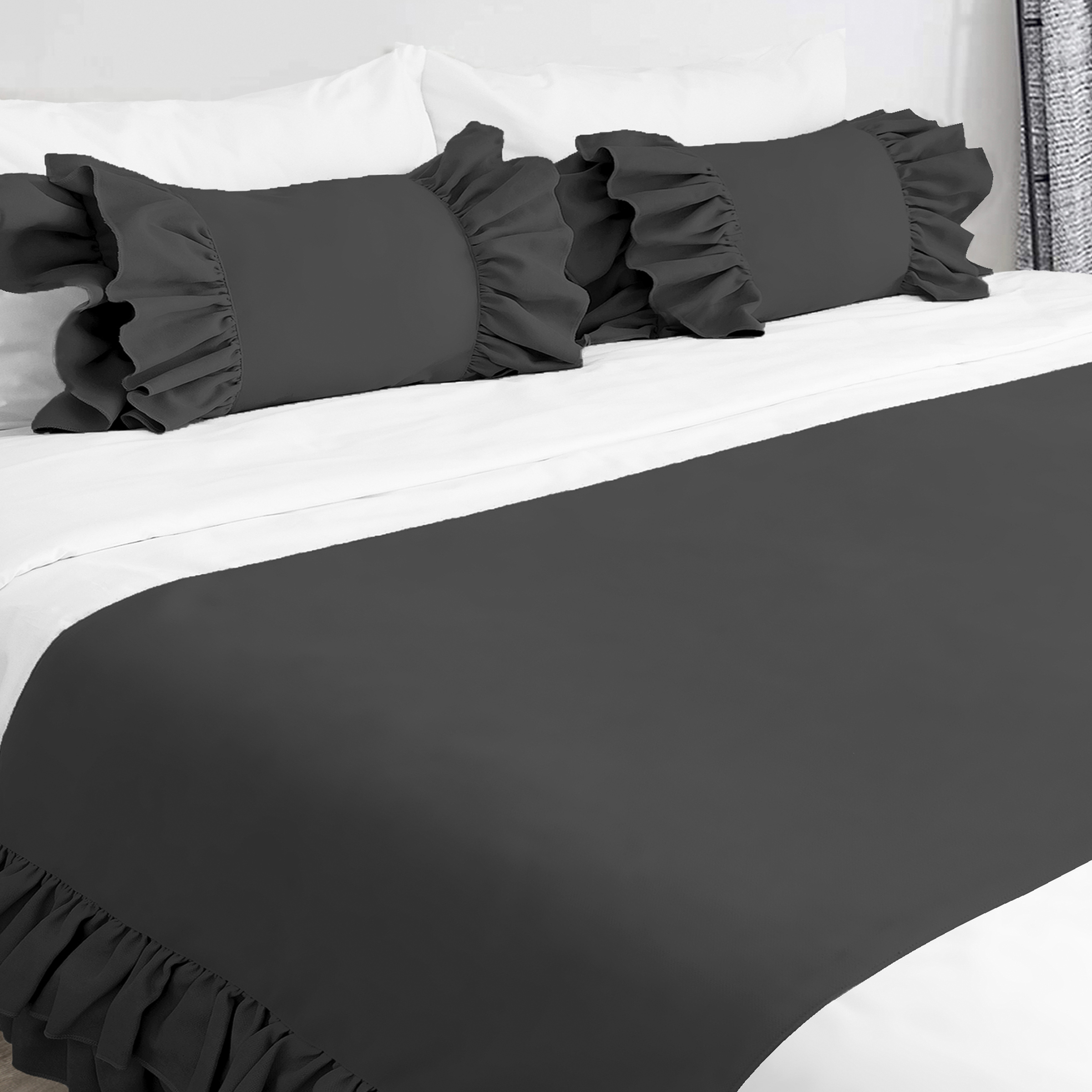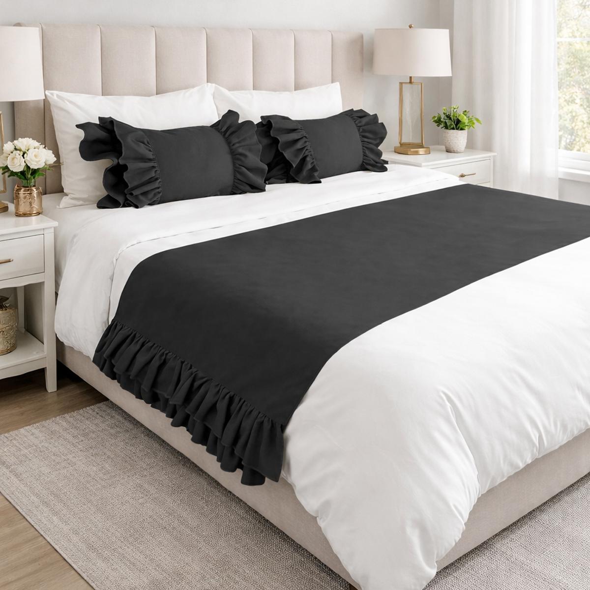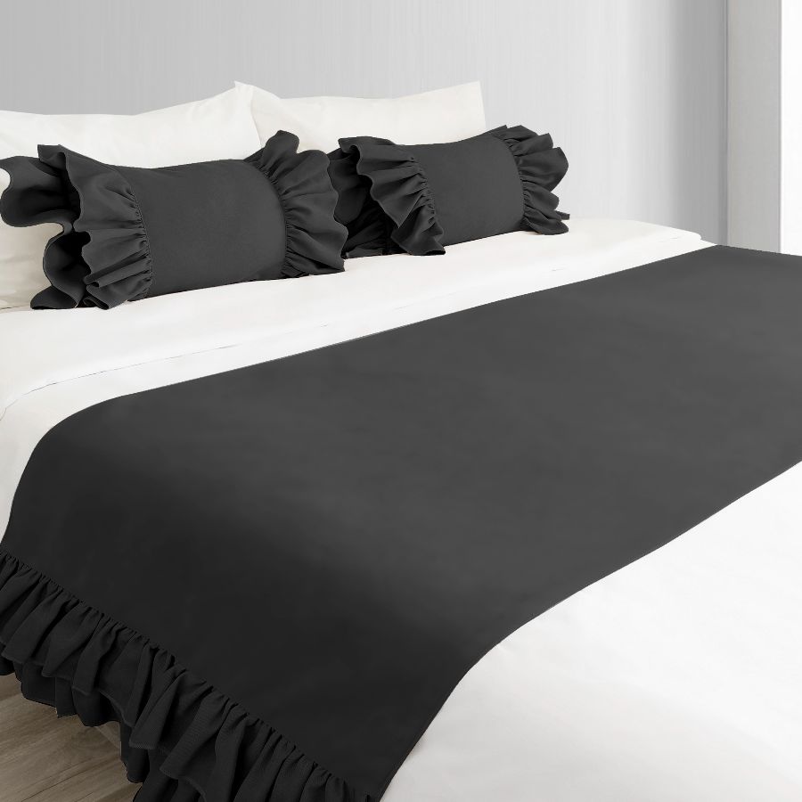 Yatak runner çift kişilik 70x240 cm ölçüsündedir. Fırfır detayları vardır.