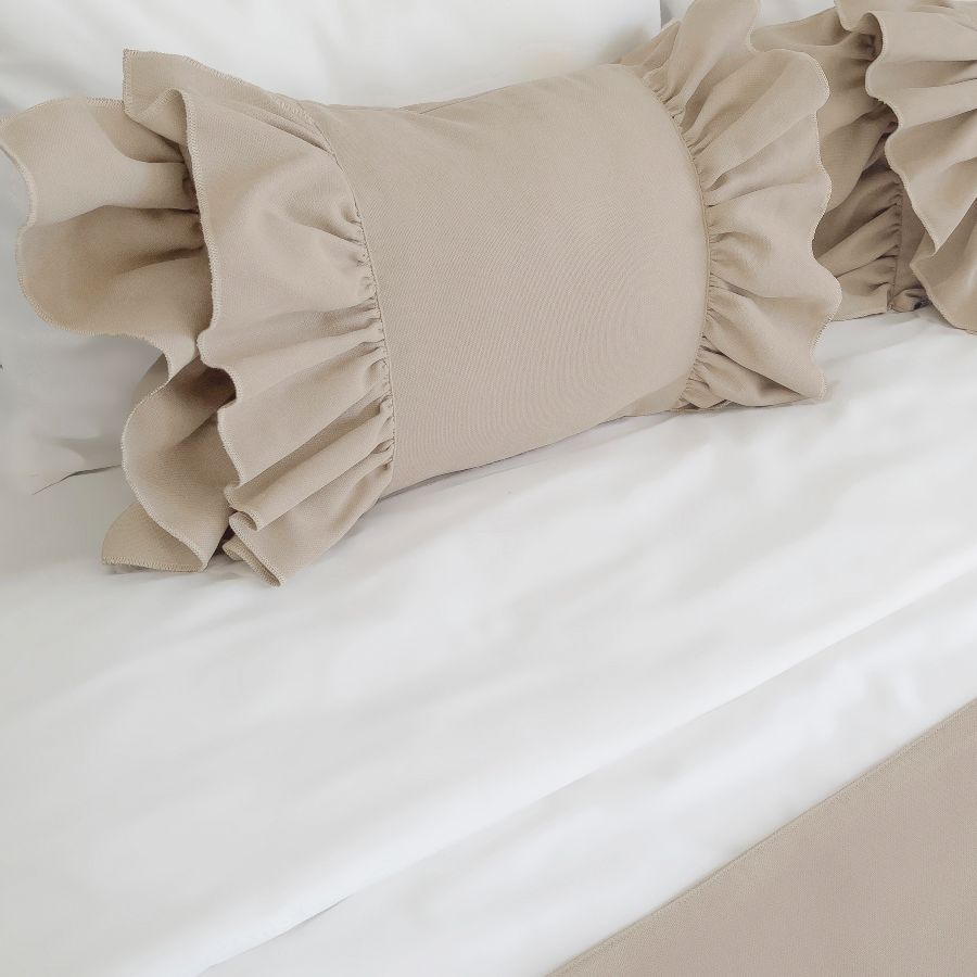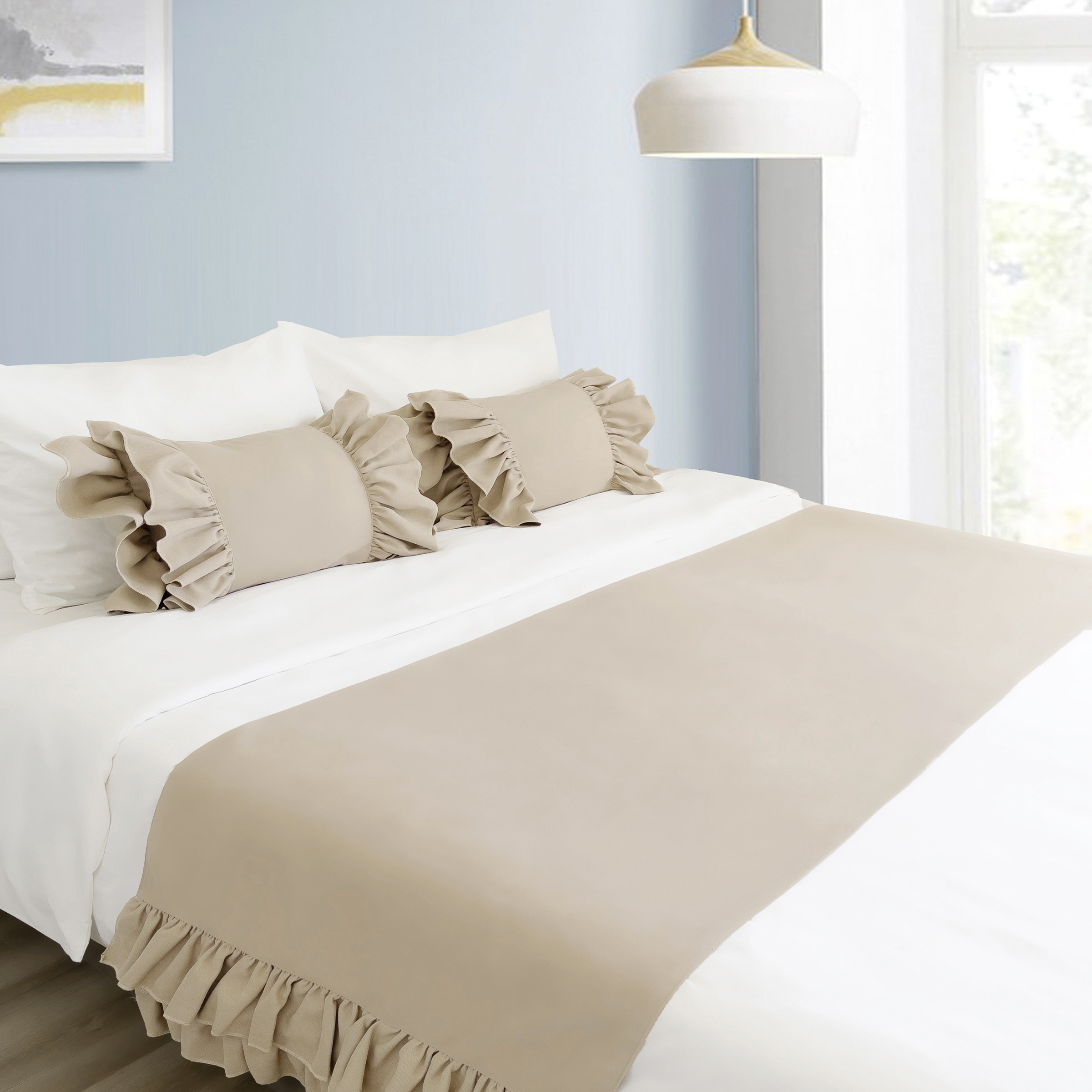 Çift Kişilik Yatak Runner Seti Vizon Fırfırlı