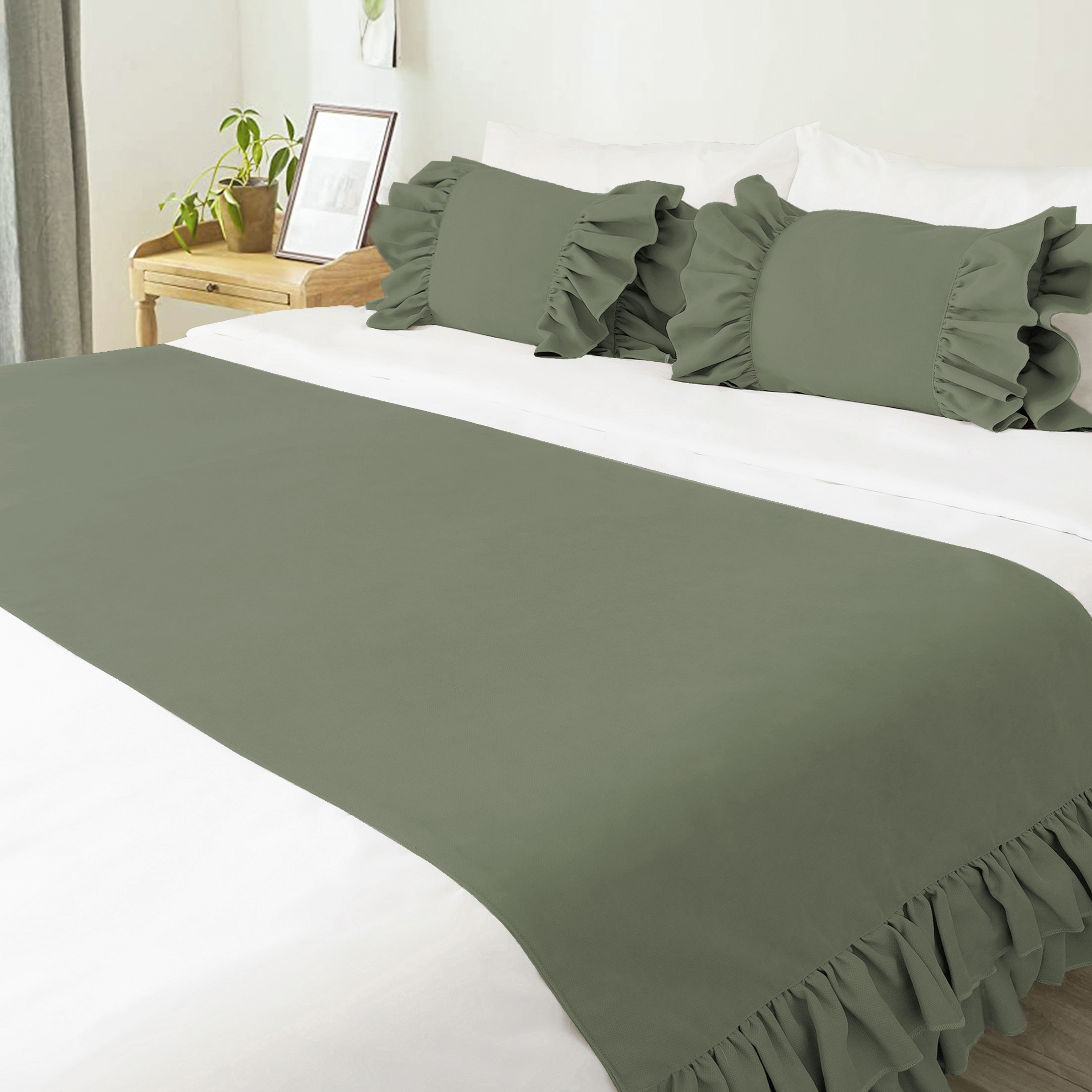 Çift Kişilik Yatak Runner Seti Yeşil Fırfırlı