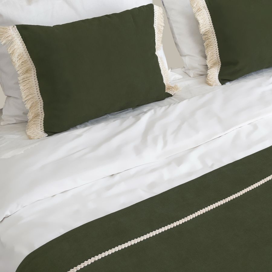 Paket içeriği çift kişilik: 1 adet yatak runner, 2 adet kırlent kılıfı, 2 adet kırlent iç dolgusu.
