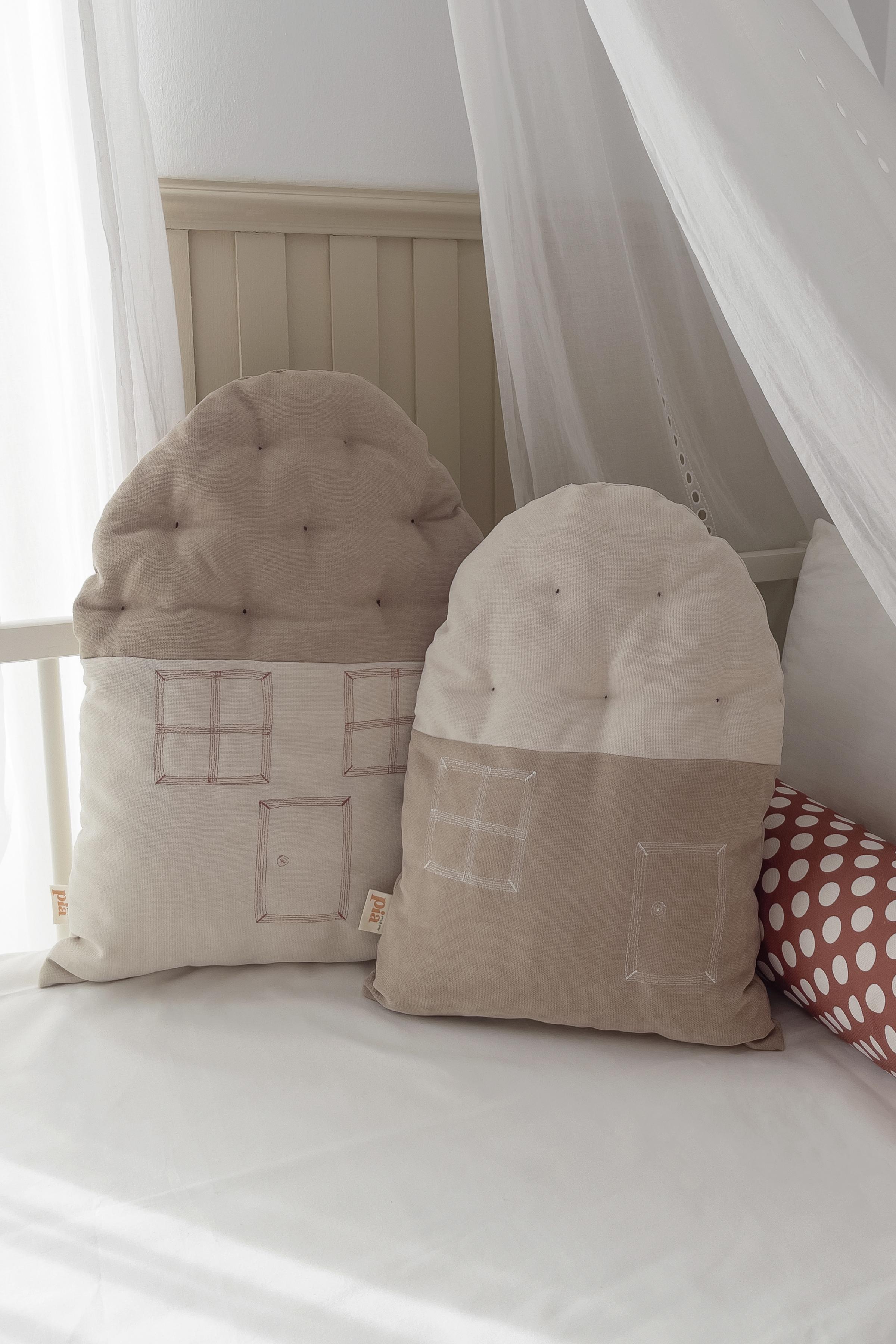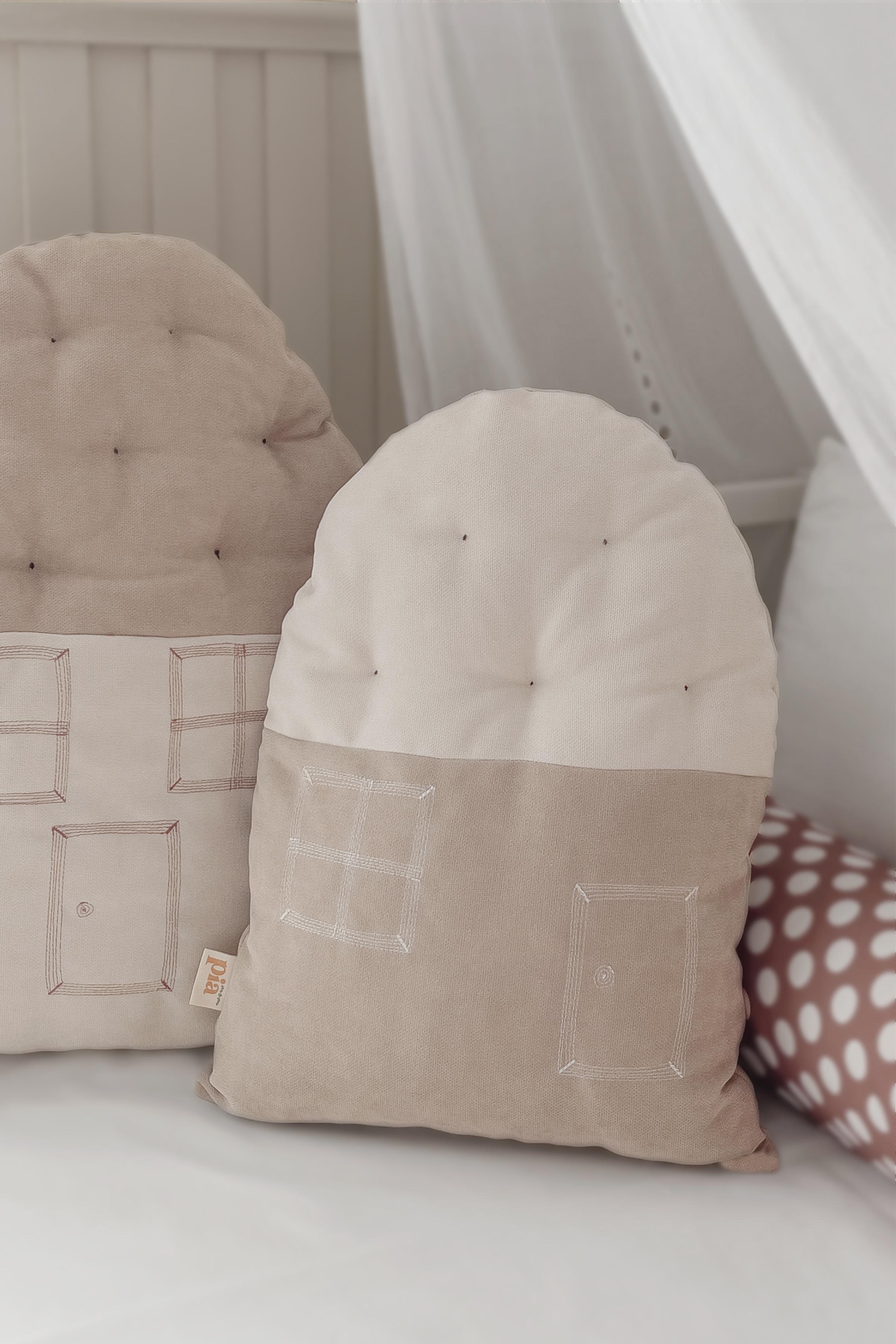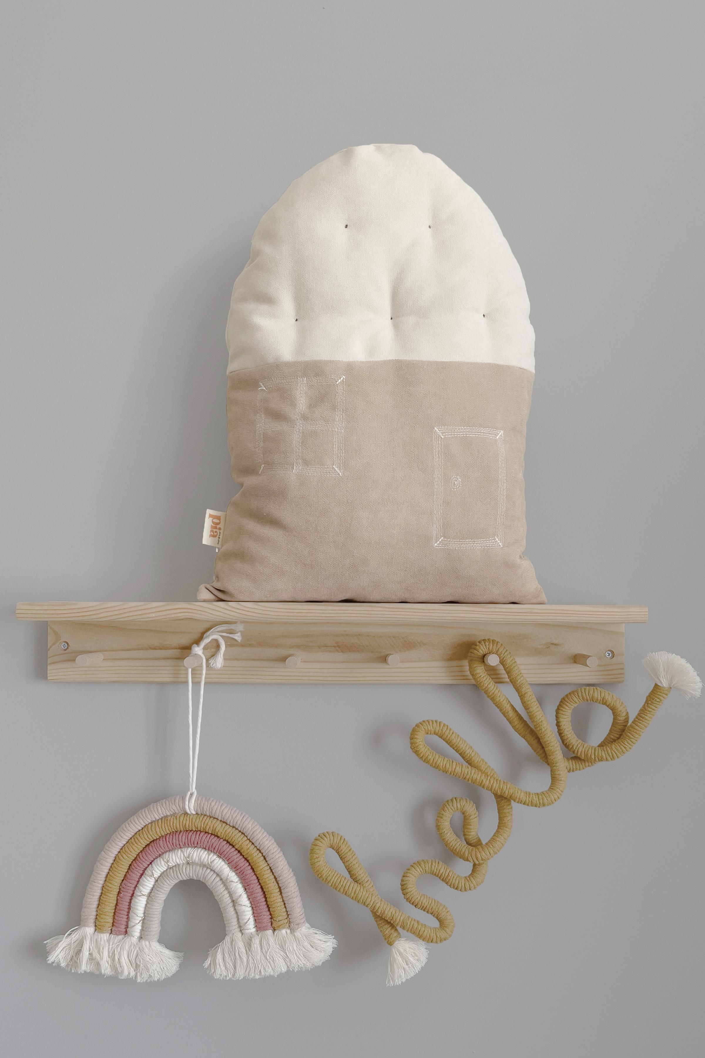 Ev Şeklinde Bohem Bebek Çocuk Odası Dekoratif Yastık Krem Toprak