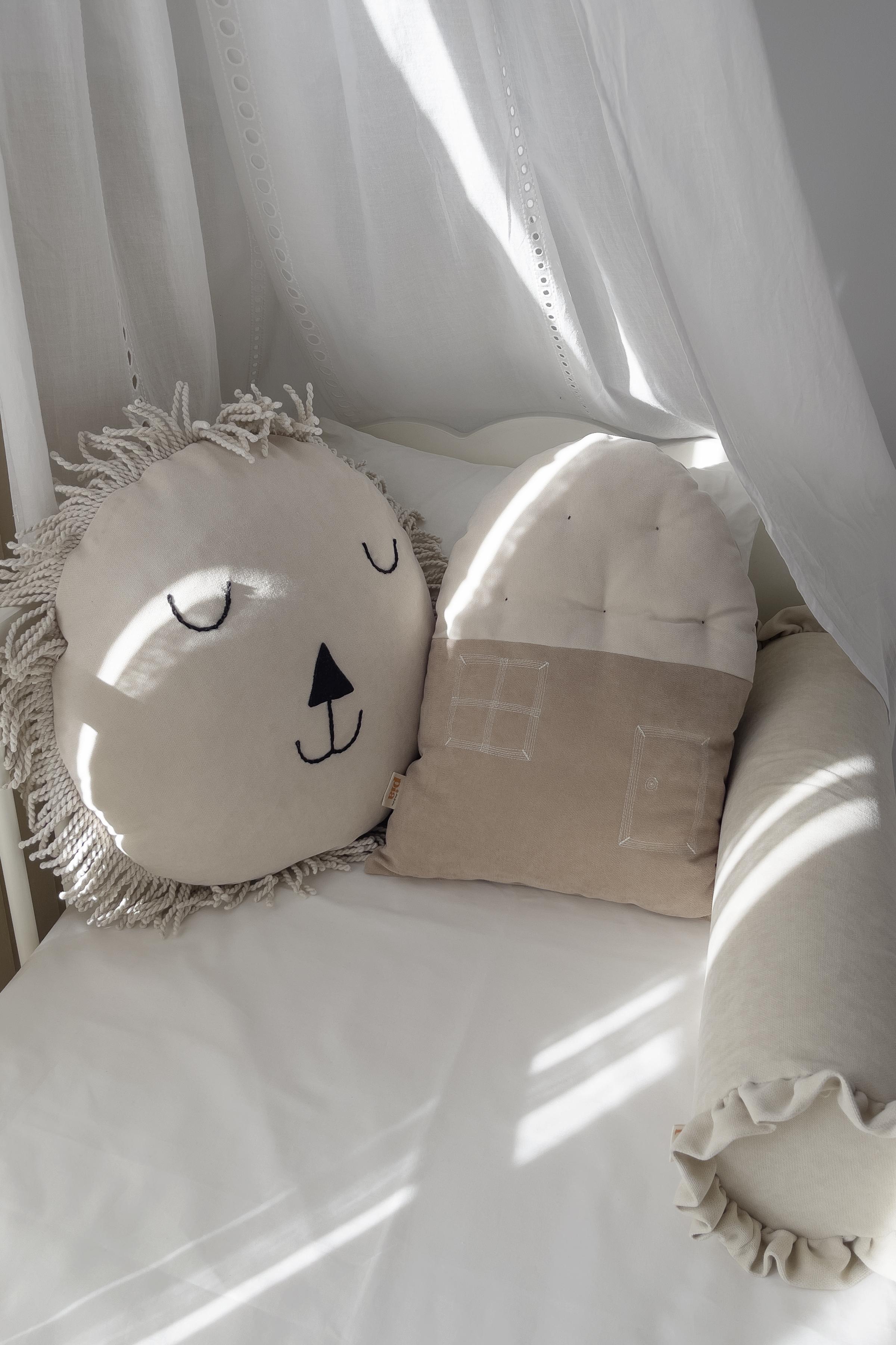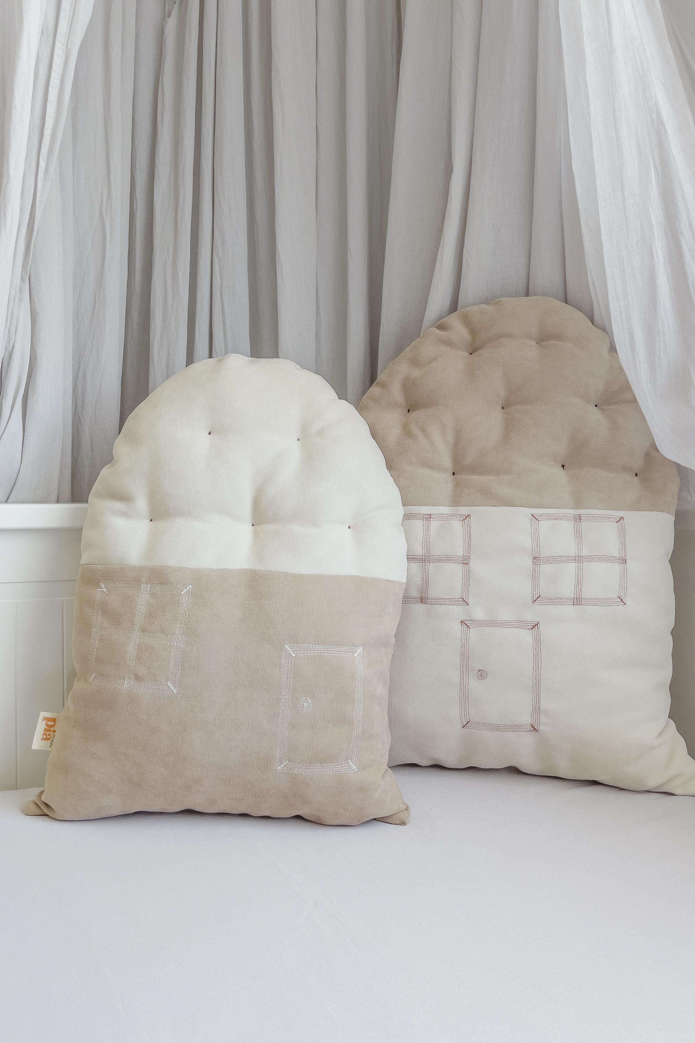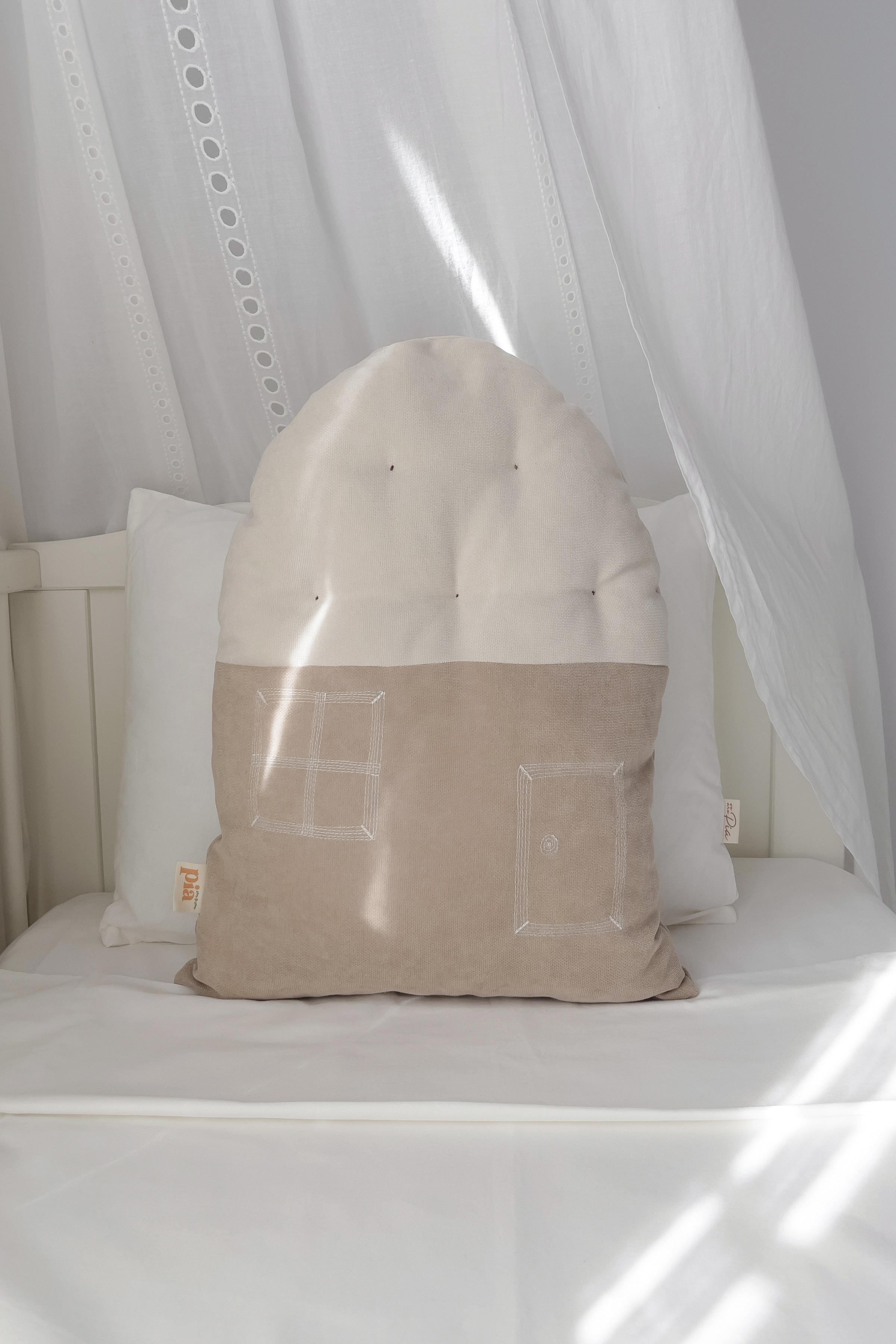 Ev Şeklinde Bohem Bebek Çocuk Odası Dekoratif Yastık Krem Toprak