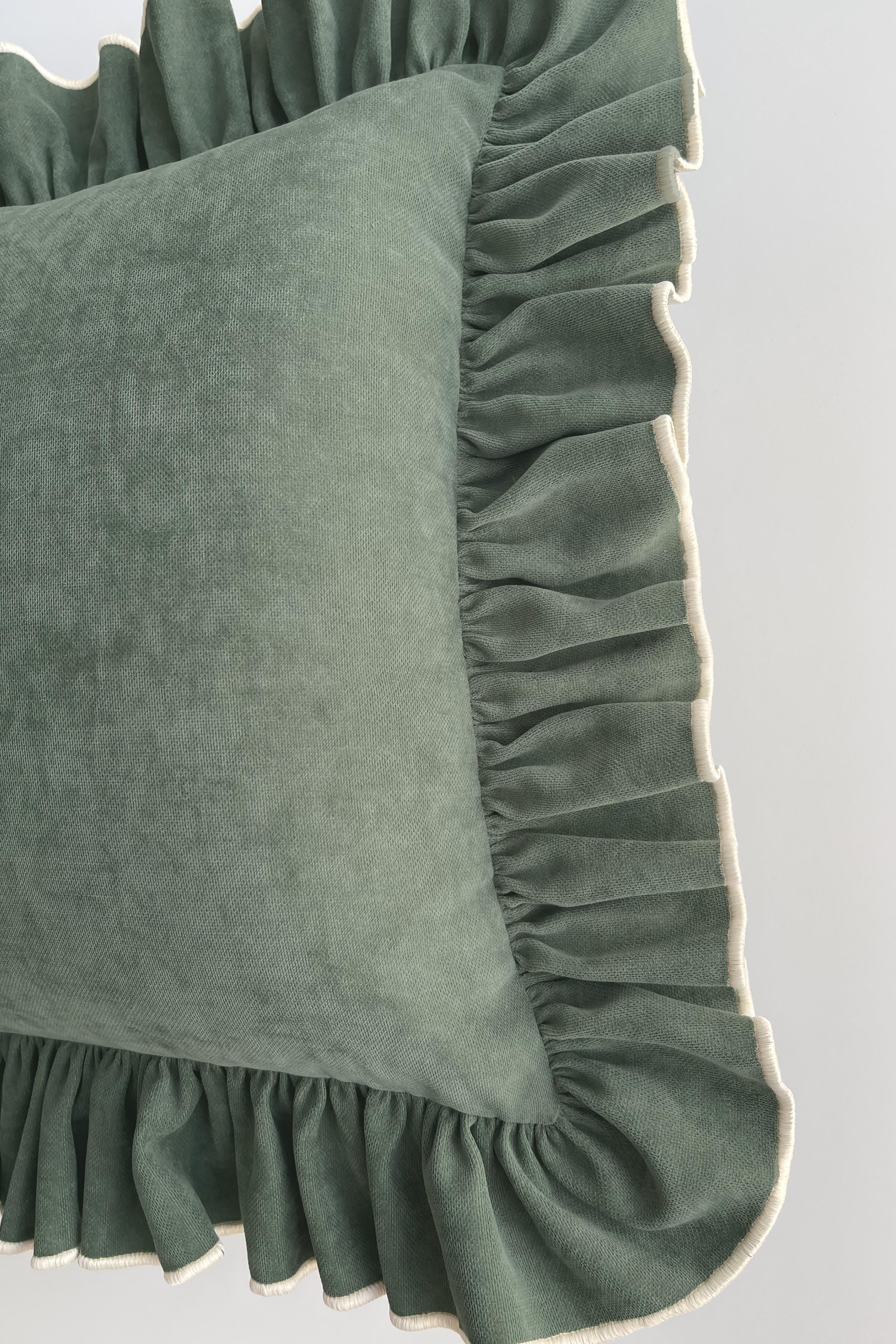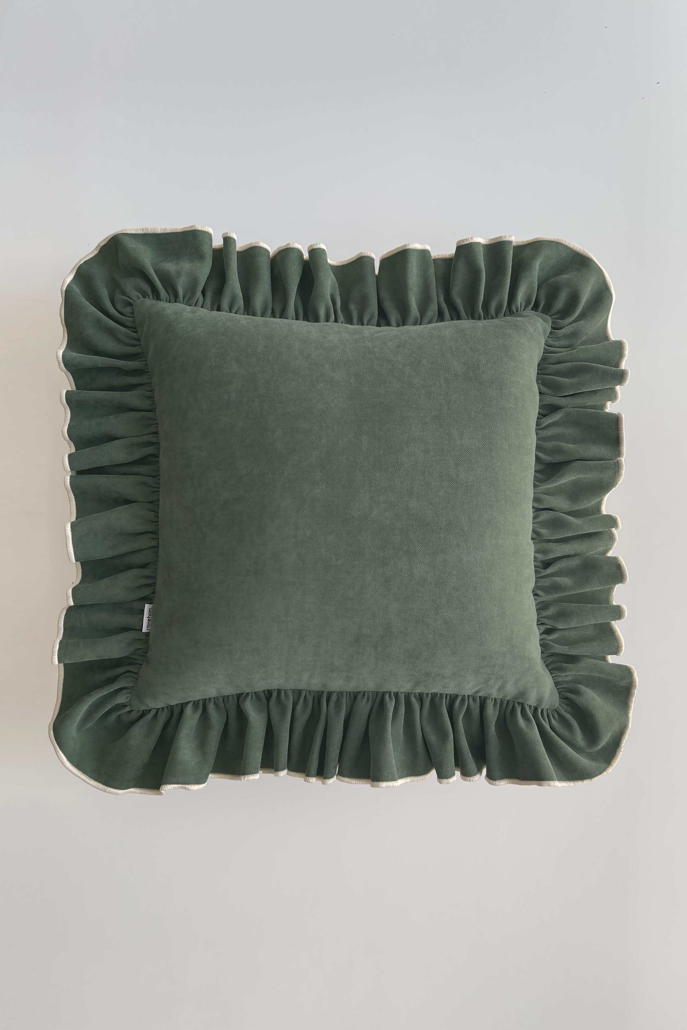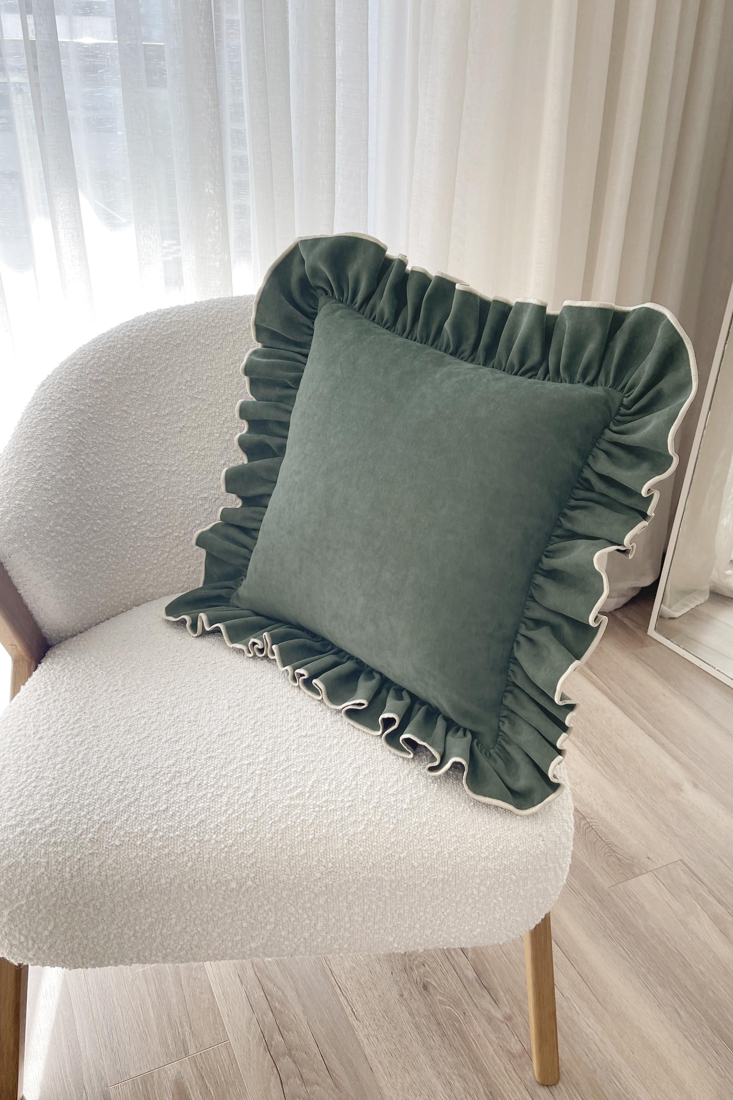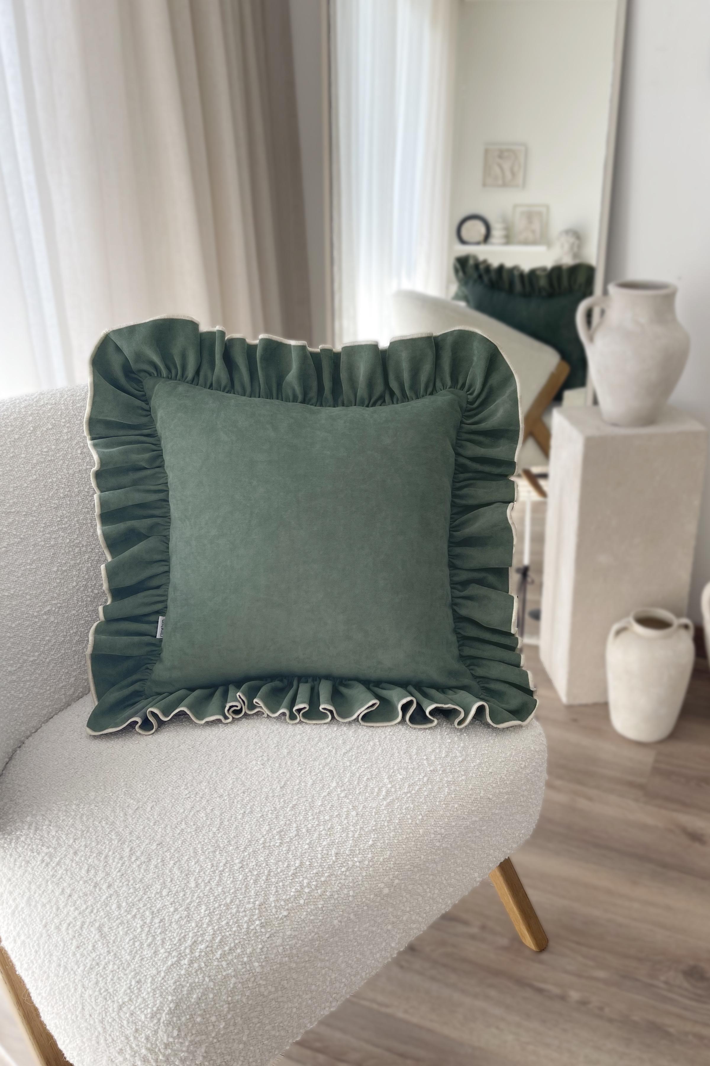 Fırfırlı Country Kırlent Kılıfı Yeşil
