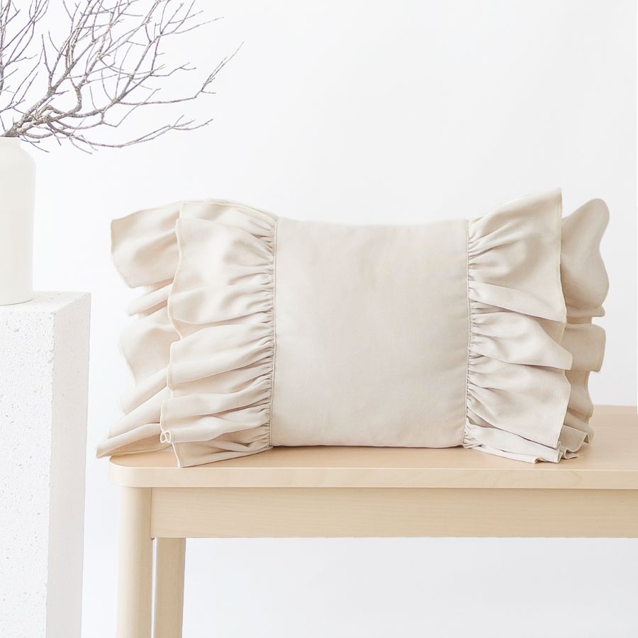 Fırfırlı Vintage Kırlent Kılıfı Krem
