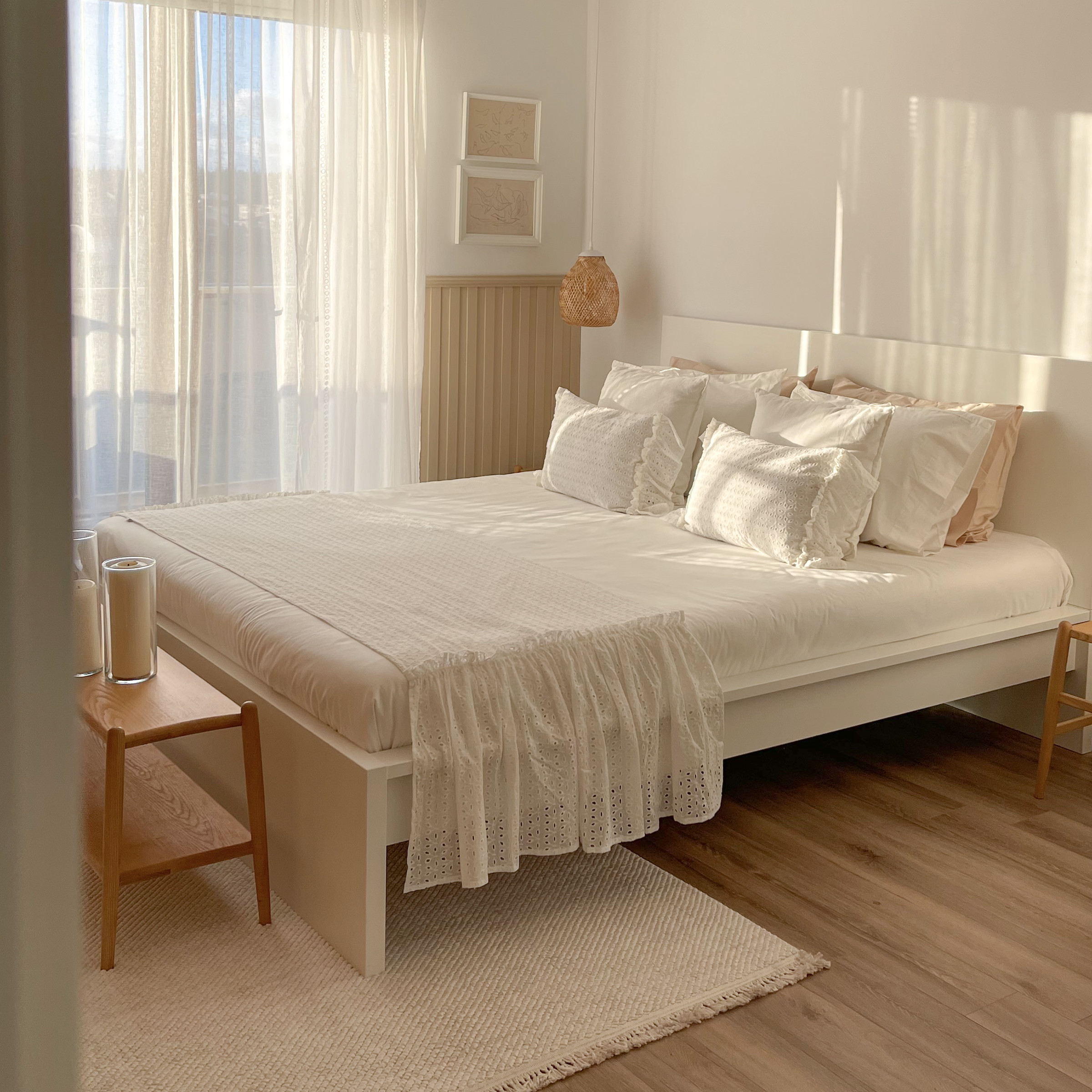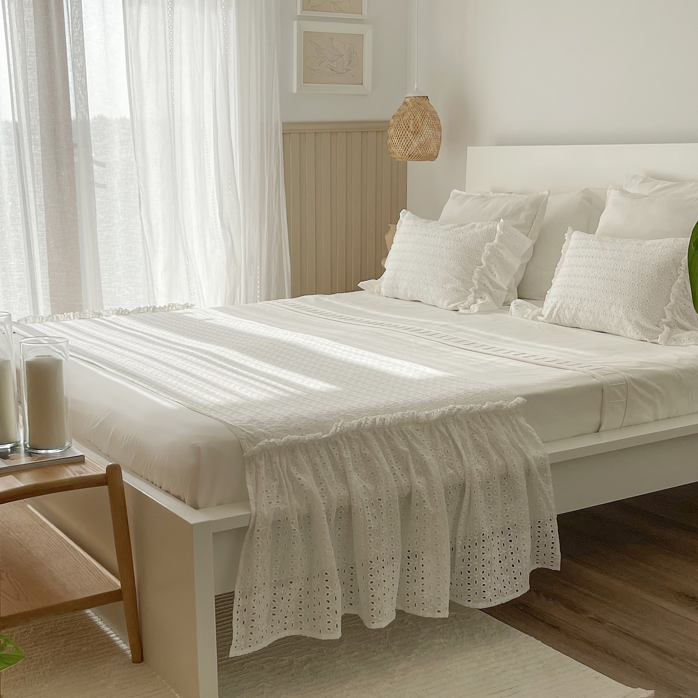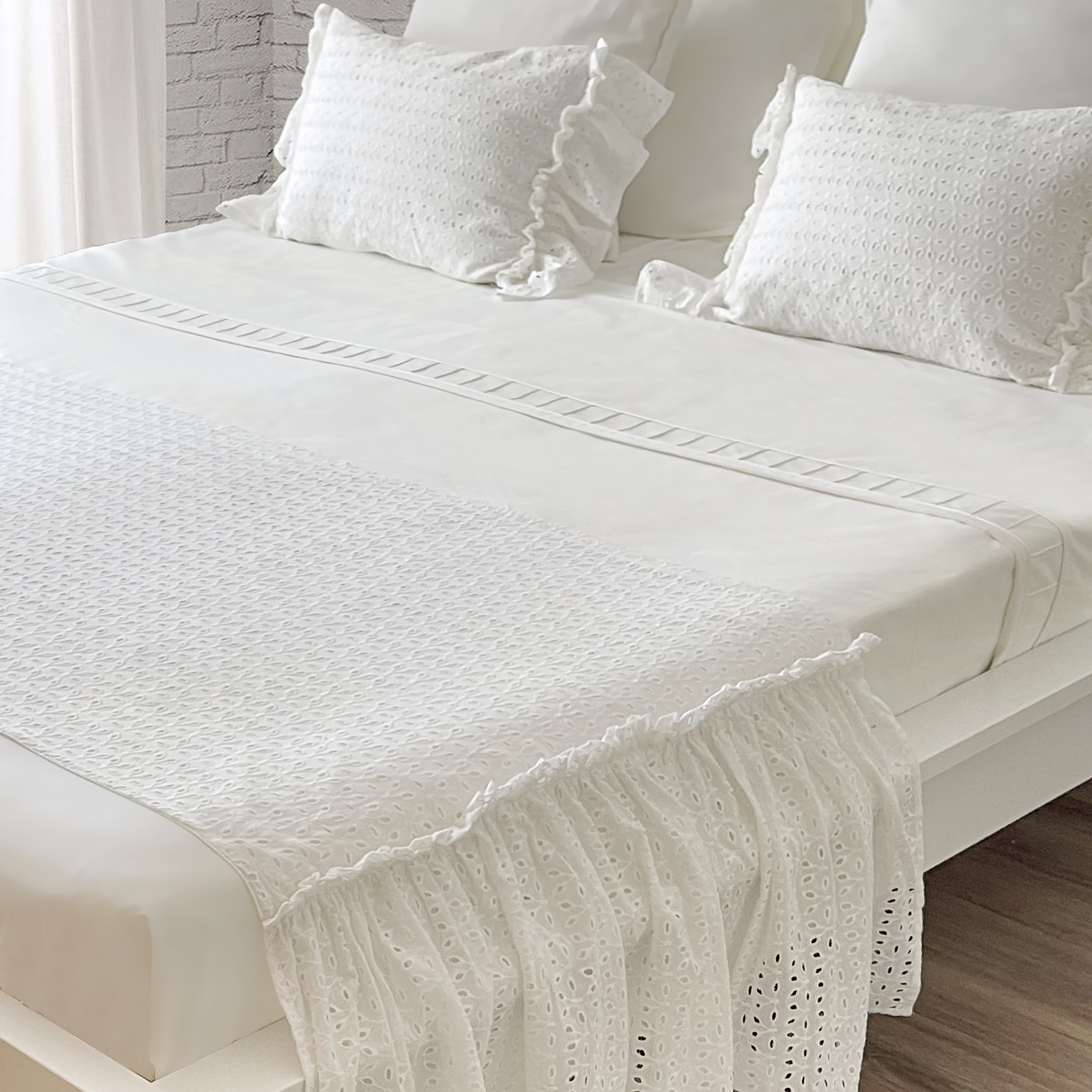 Paket içeriği: 1 adet yatak runner 2 adet kırlent kılıfı, 2 adet kırlent iç dolgusu.