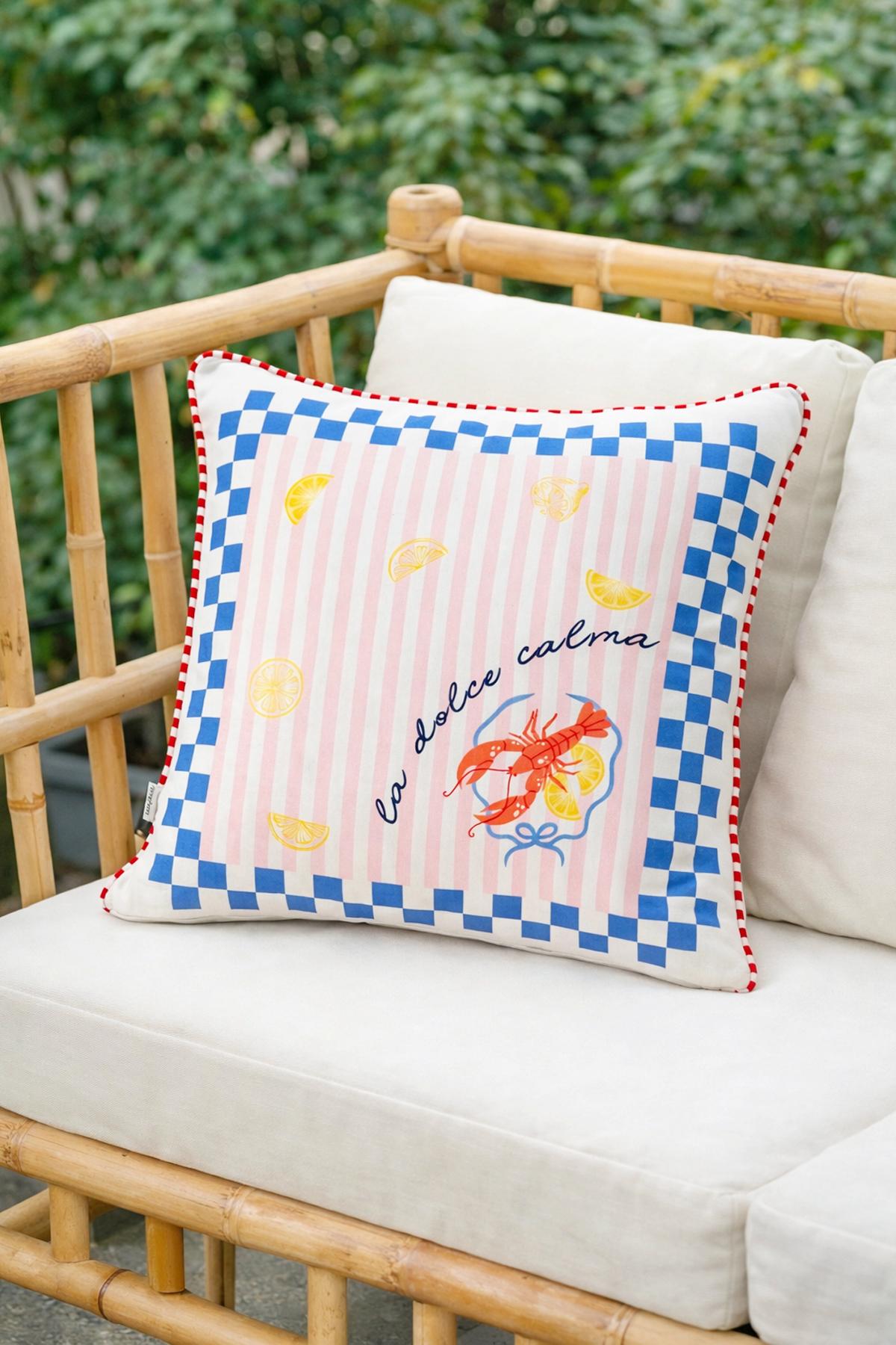 Istakoz Desenli Kırlent Kılıfı