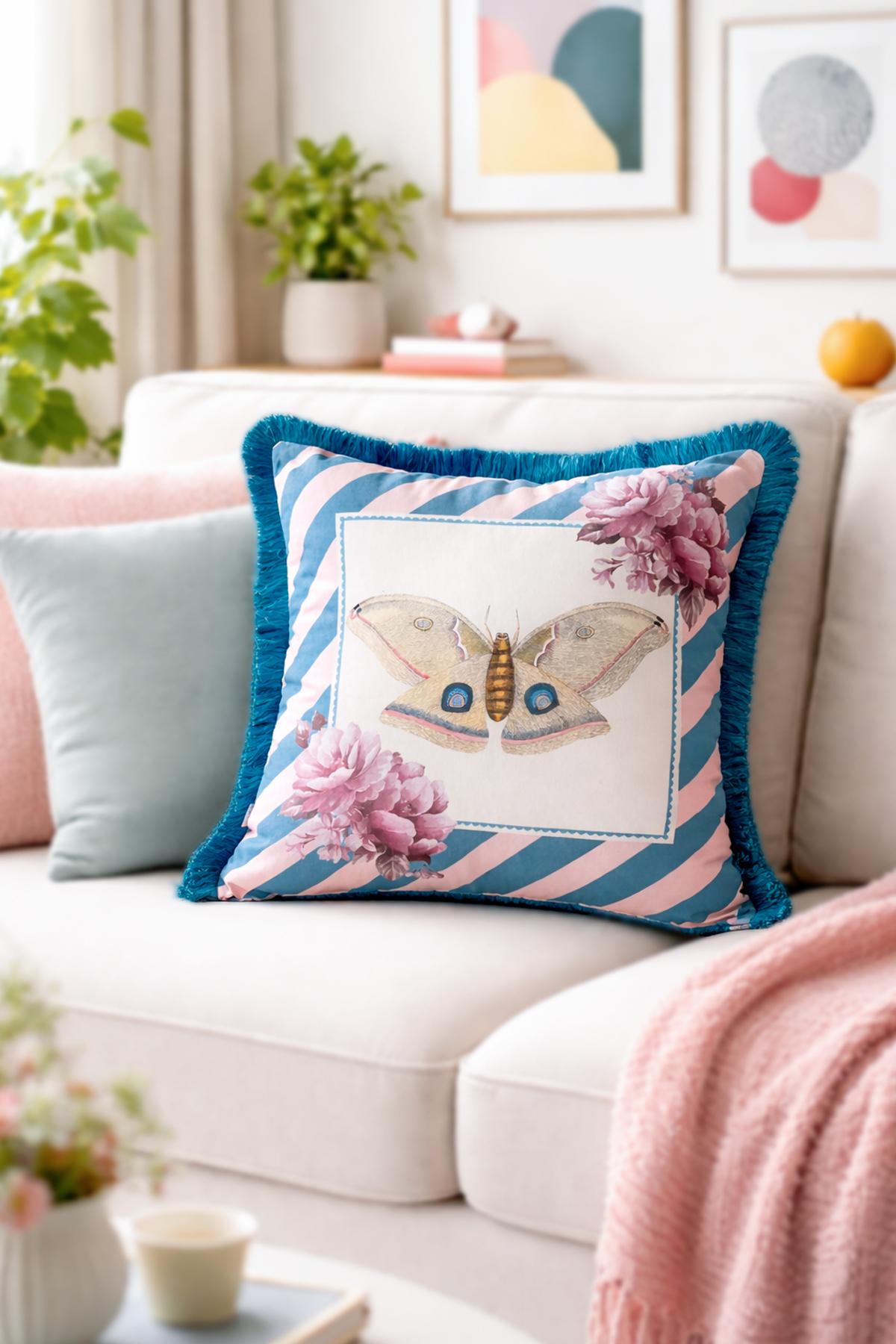 Kelebek Desenli Püsküllü Kırlent