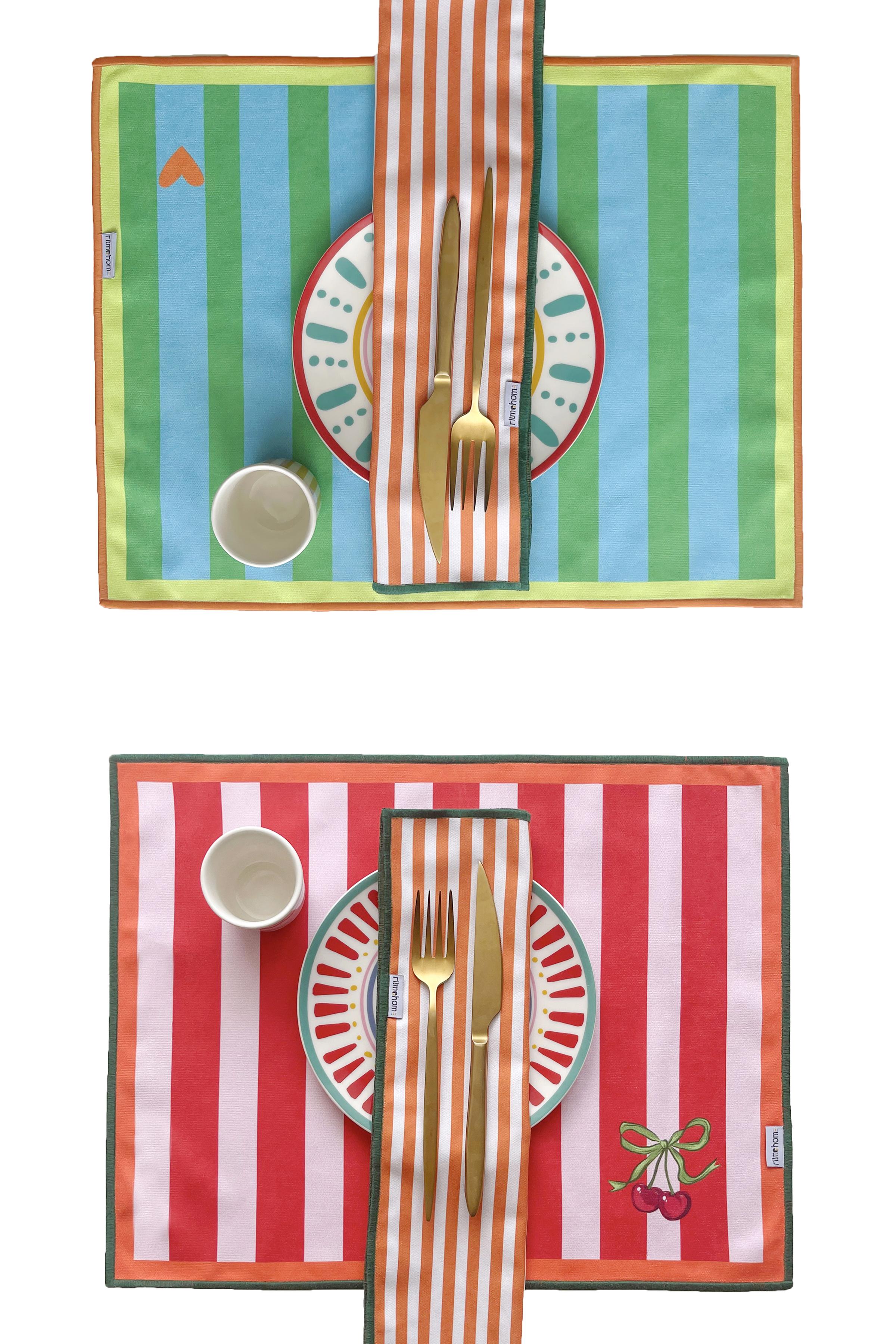 Özenle üretilen bu ürünler cesur renkleri, dinamik desenleri ve çift taraflı kullanımıyla sofralara maksimalist bir enerji katıyor.