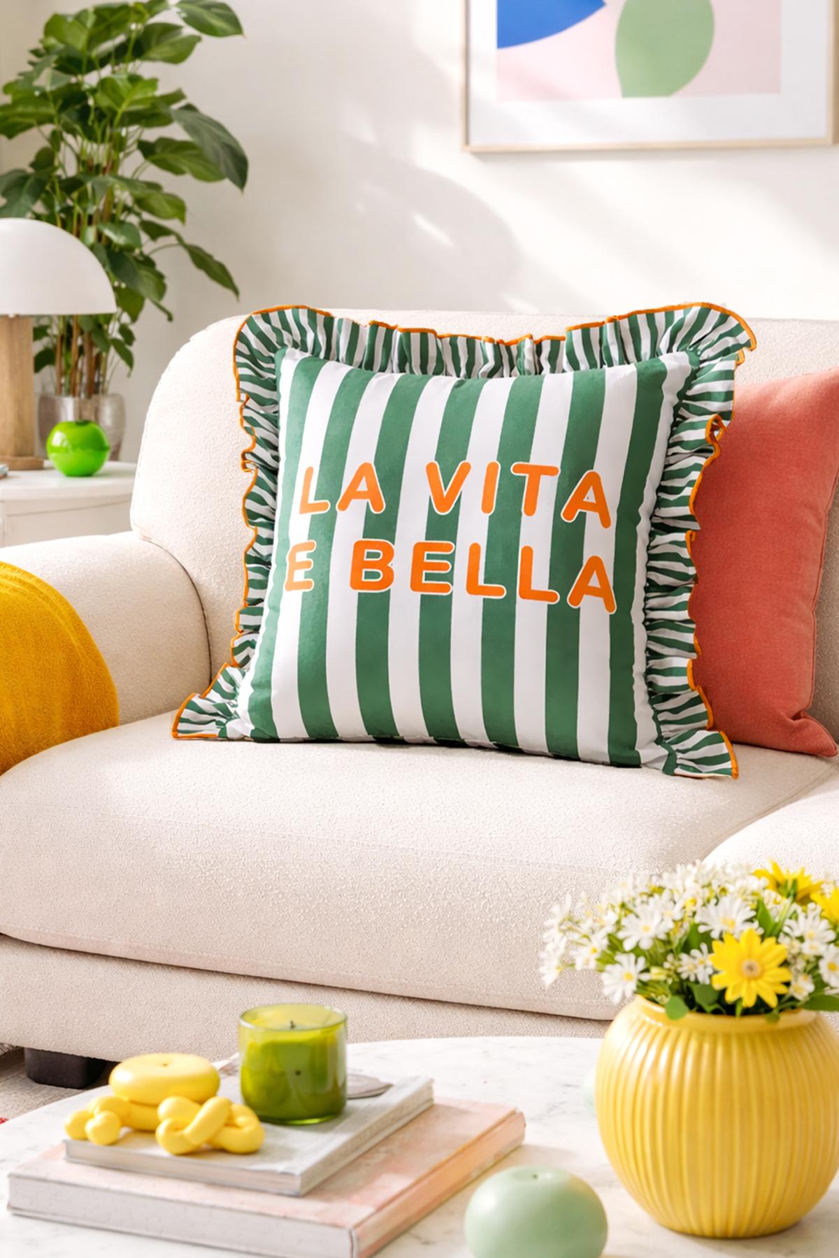 La Vita E Bella Çizgili Fırfırlı Kırlent