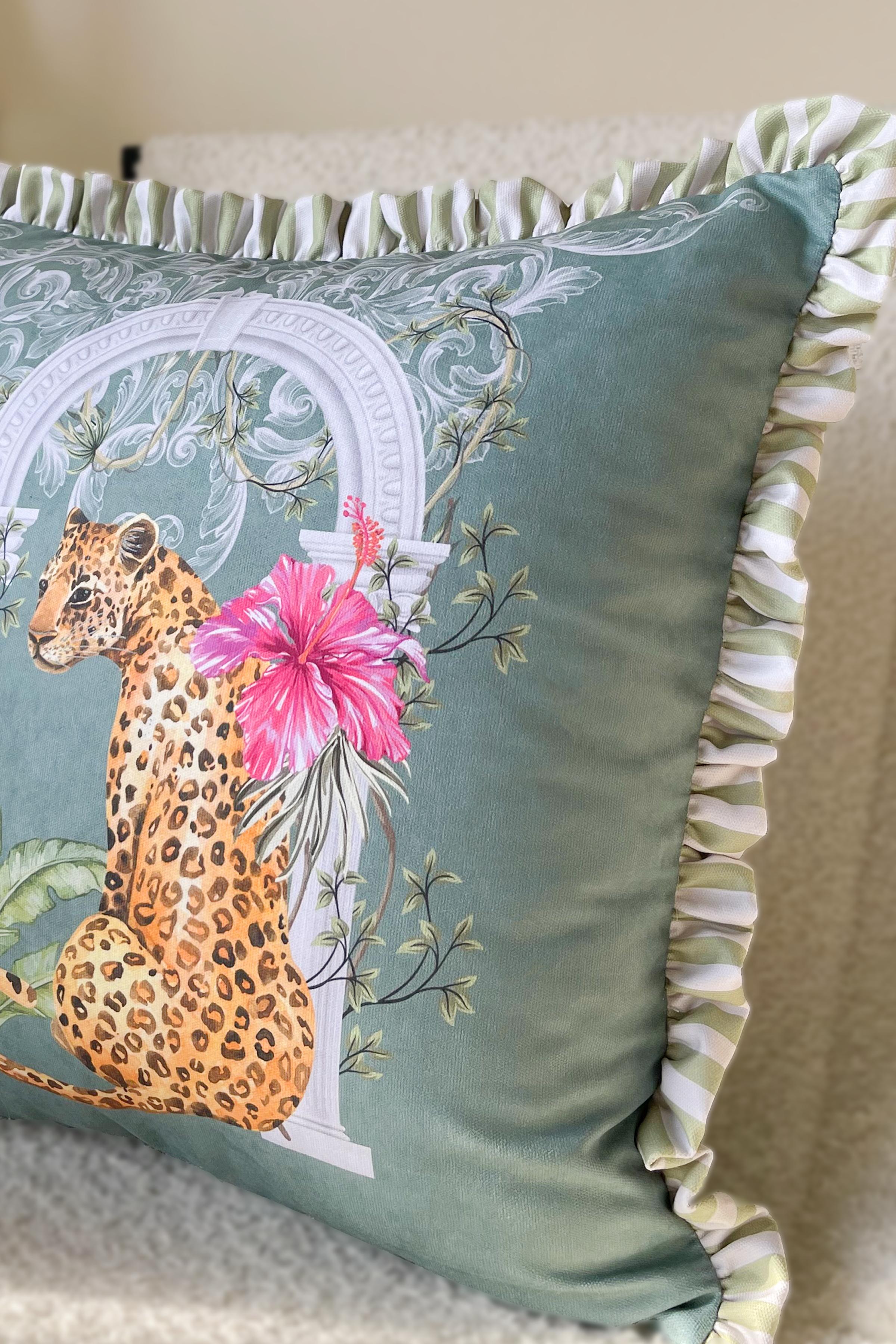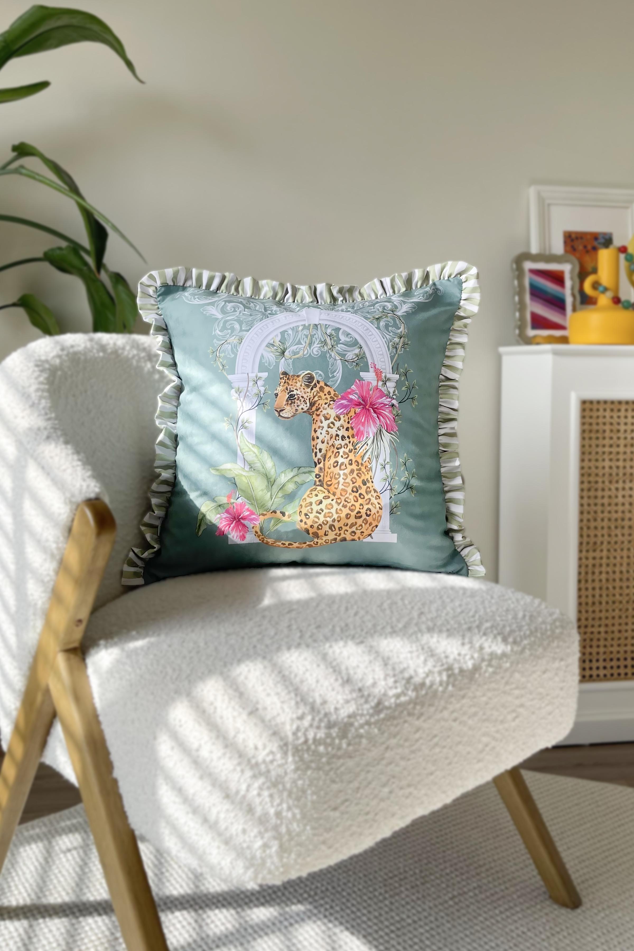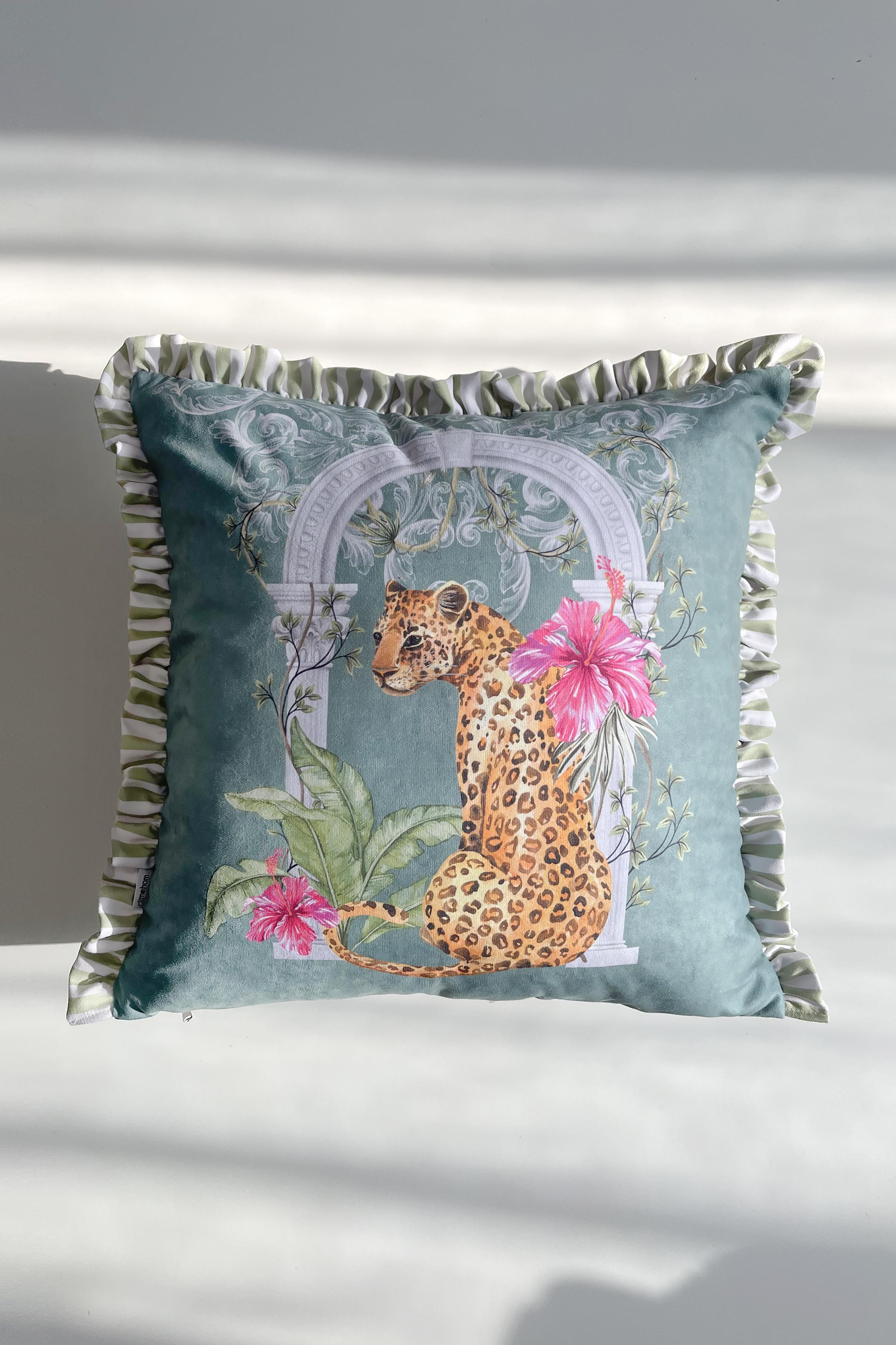 Leopar Desenli Fırfırlı Kırlent
