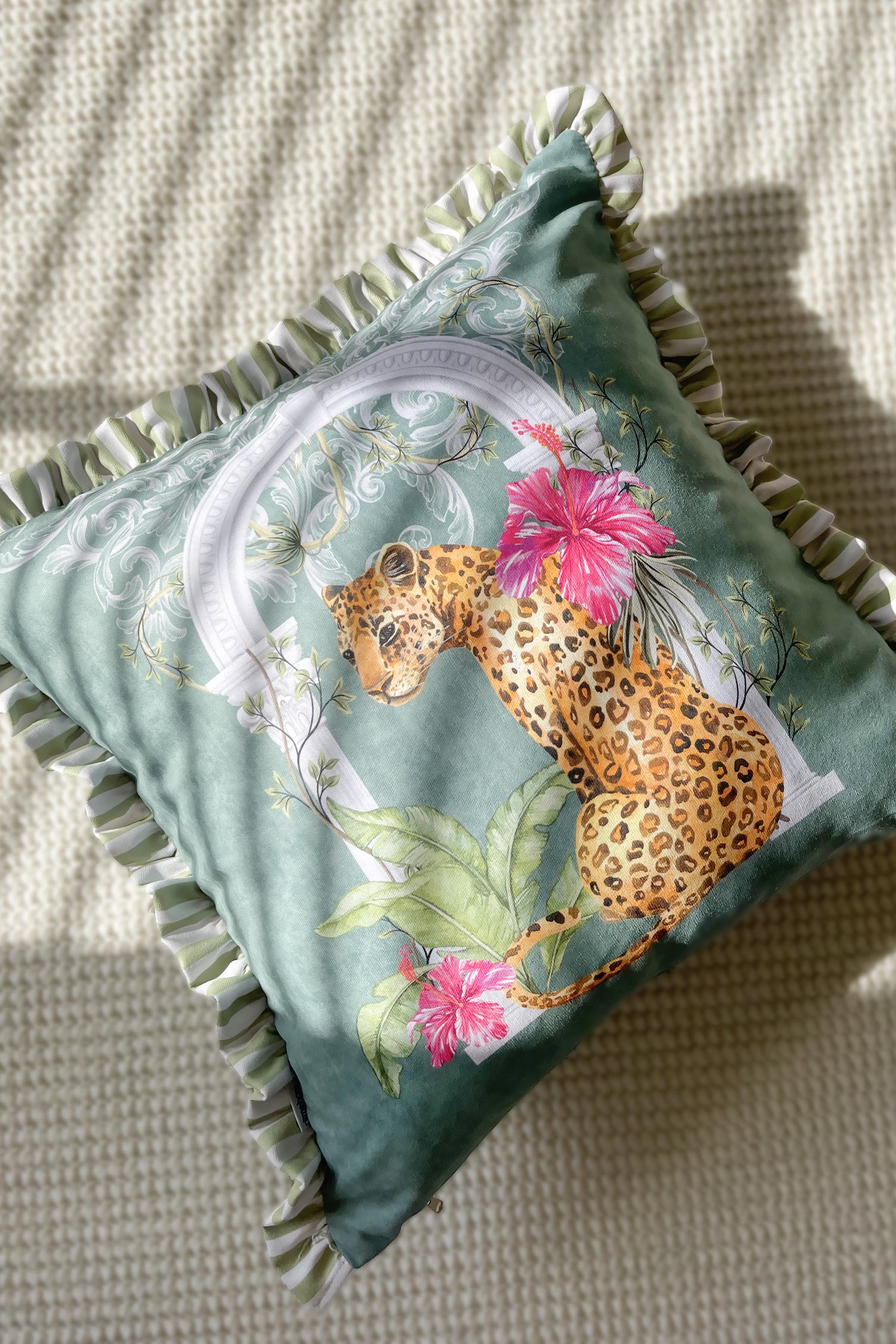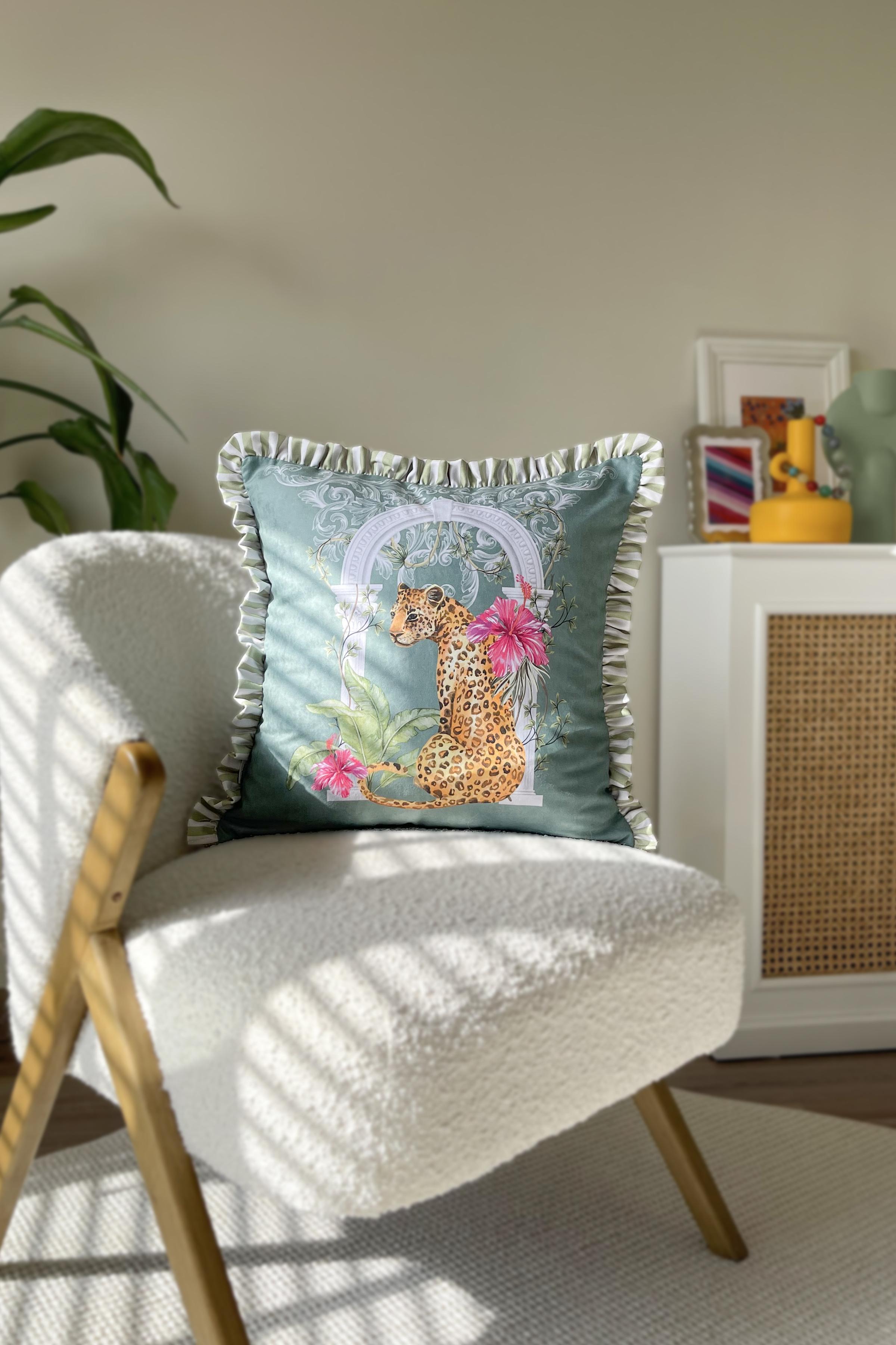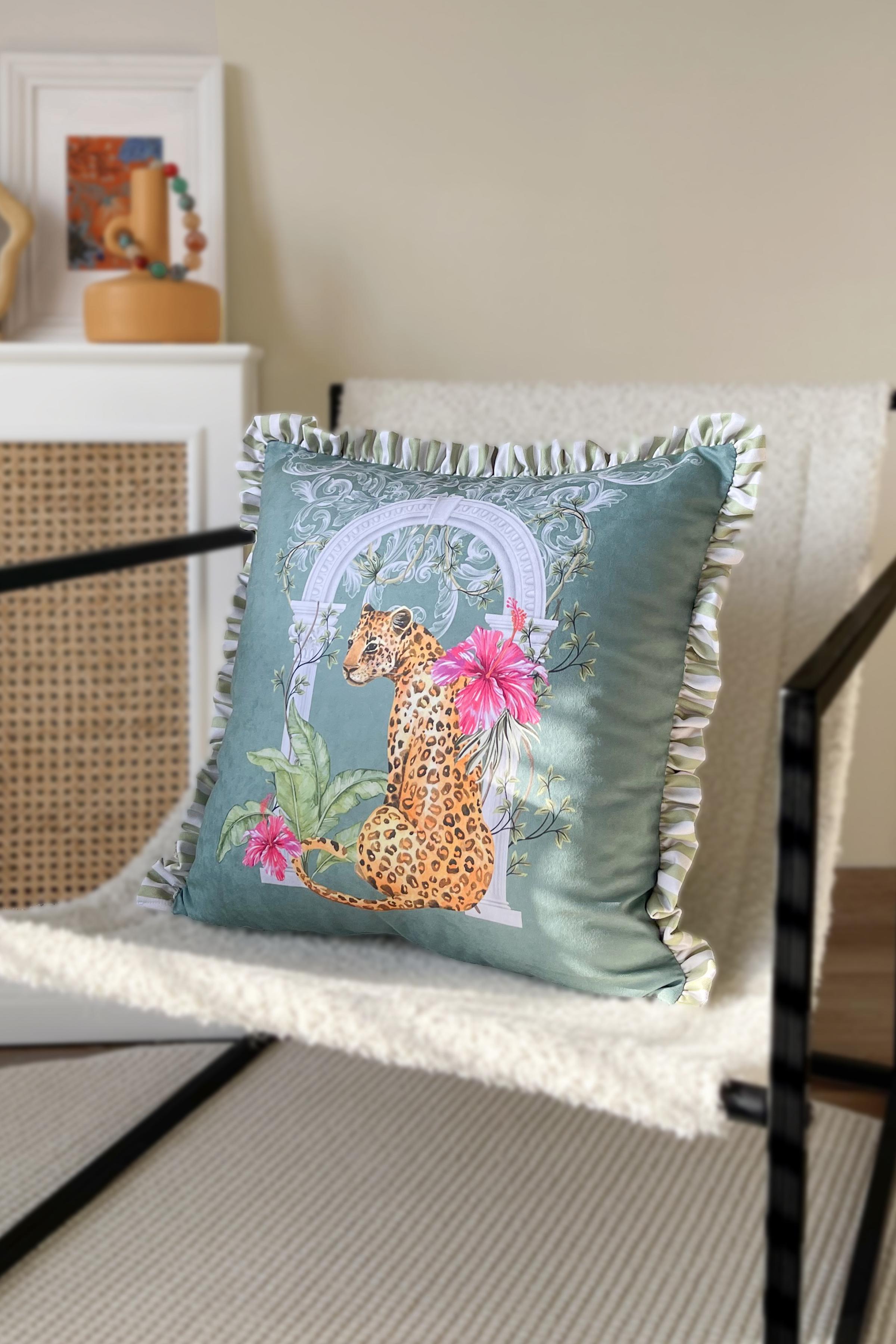 Leopar Desenli Fırfırlı Kırlent
