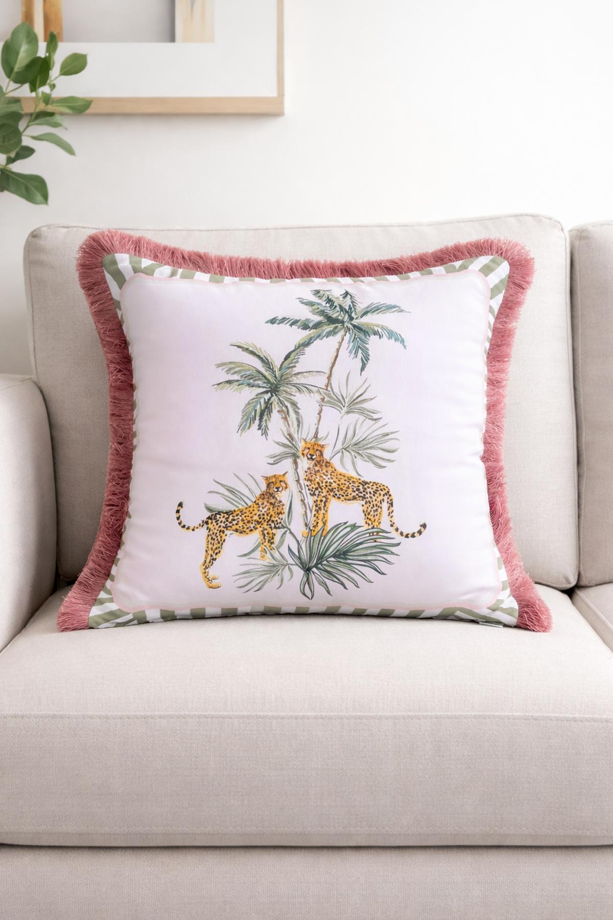 Leopar Desenli Püsküllü Kırlent
