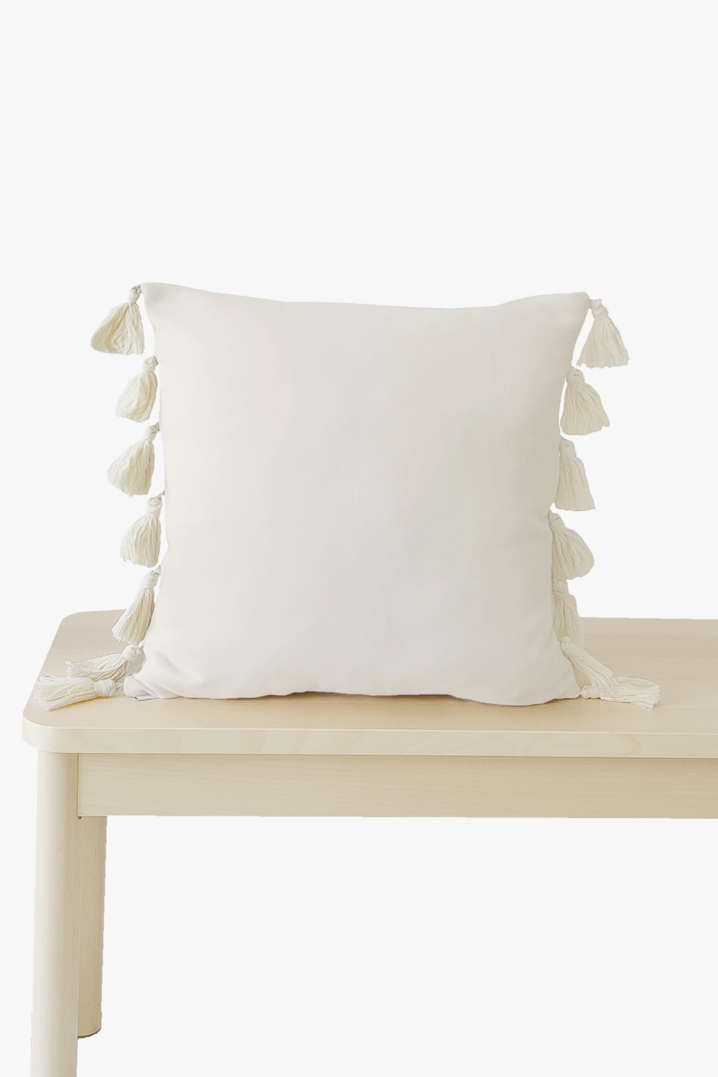 Püsküllü Bohem Krem Kırlent Kılıfı