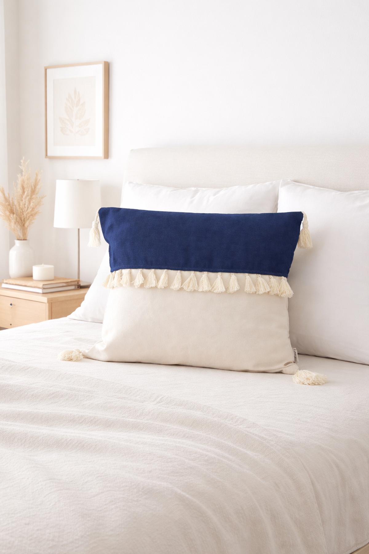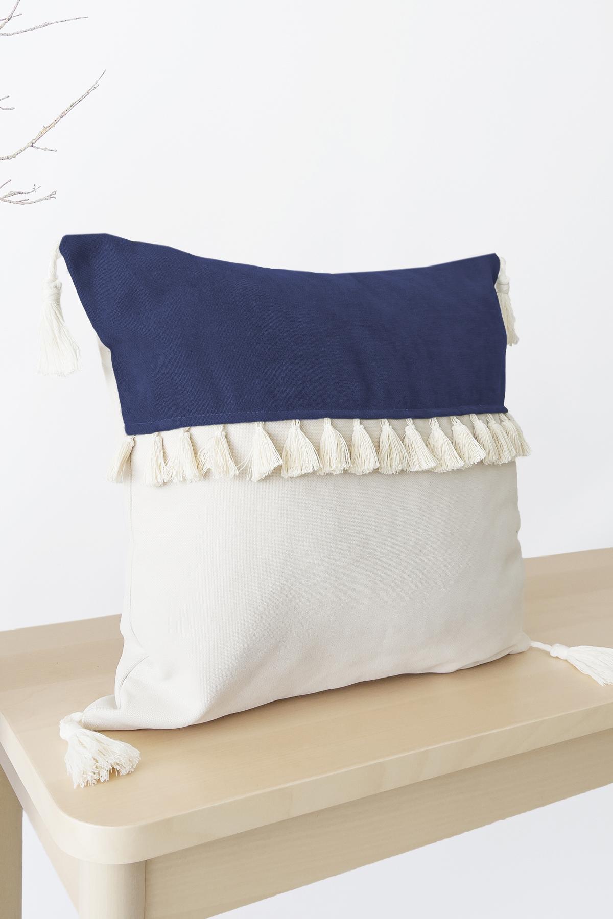 Püsküllü Kırlent Kılıfı Krem Lacivert