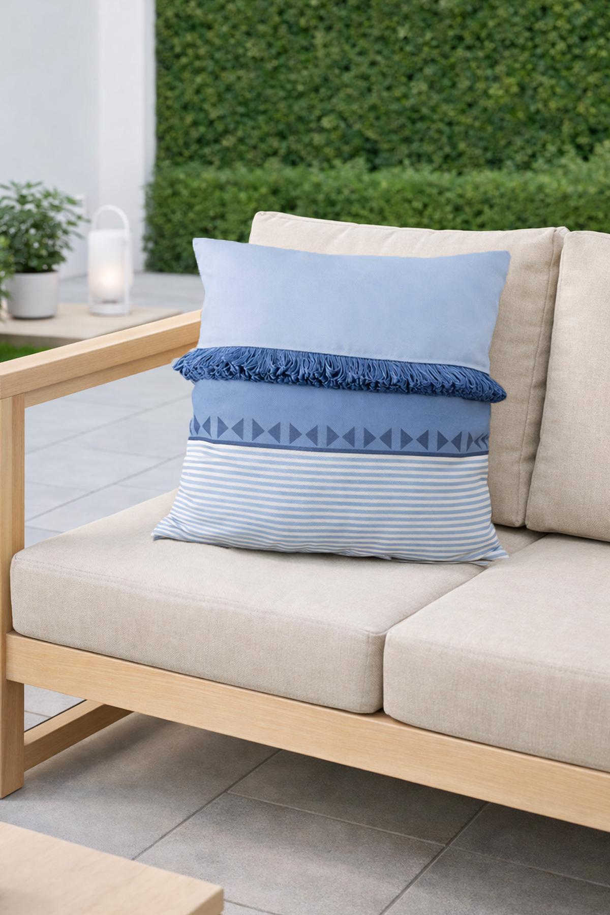 Püsküllü Marin Kırlent Kılıfı