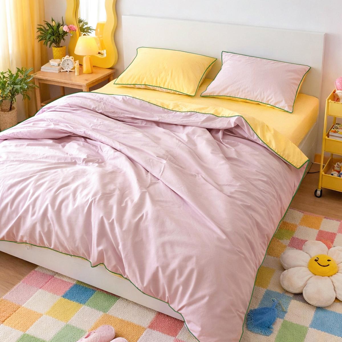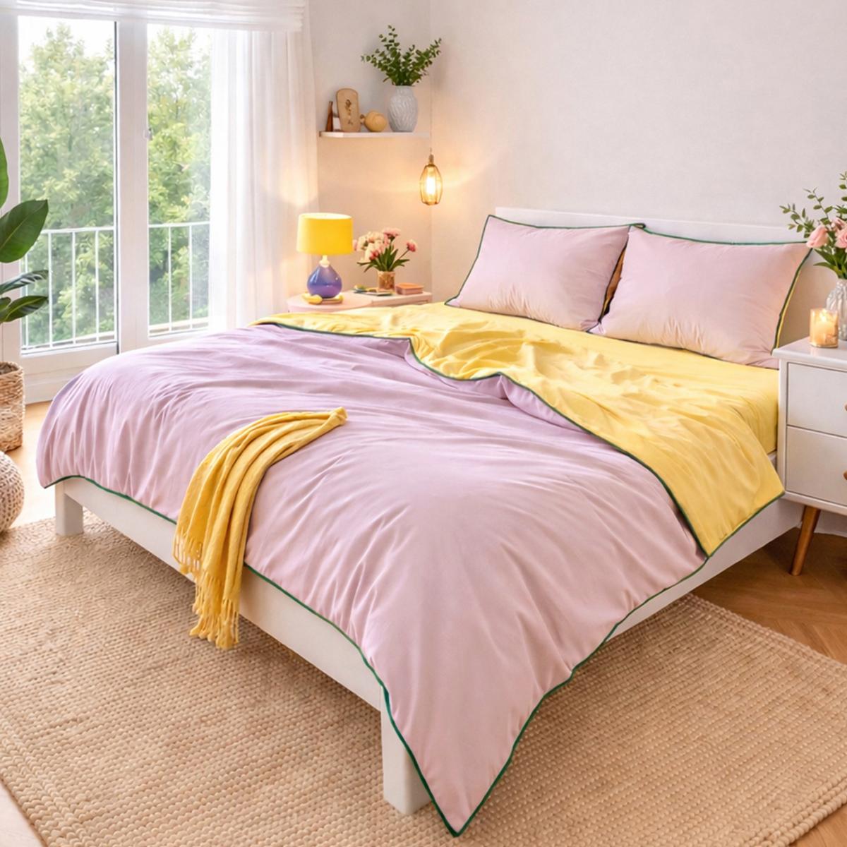 Canlı tonlar, modern dokunuşlar ve %100 pamuk konforu ile yatak odanıza taze bir hava katın.