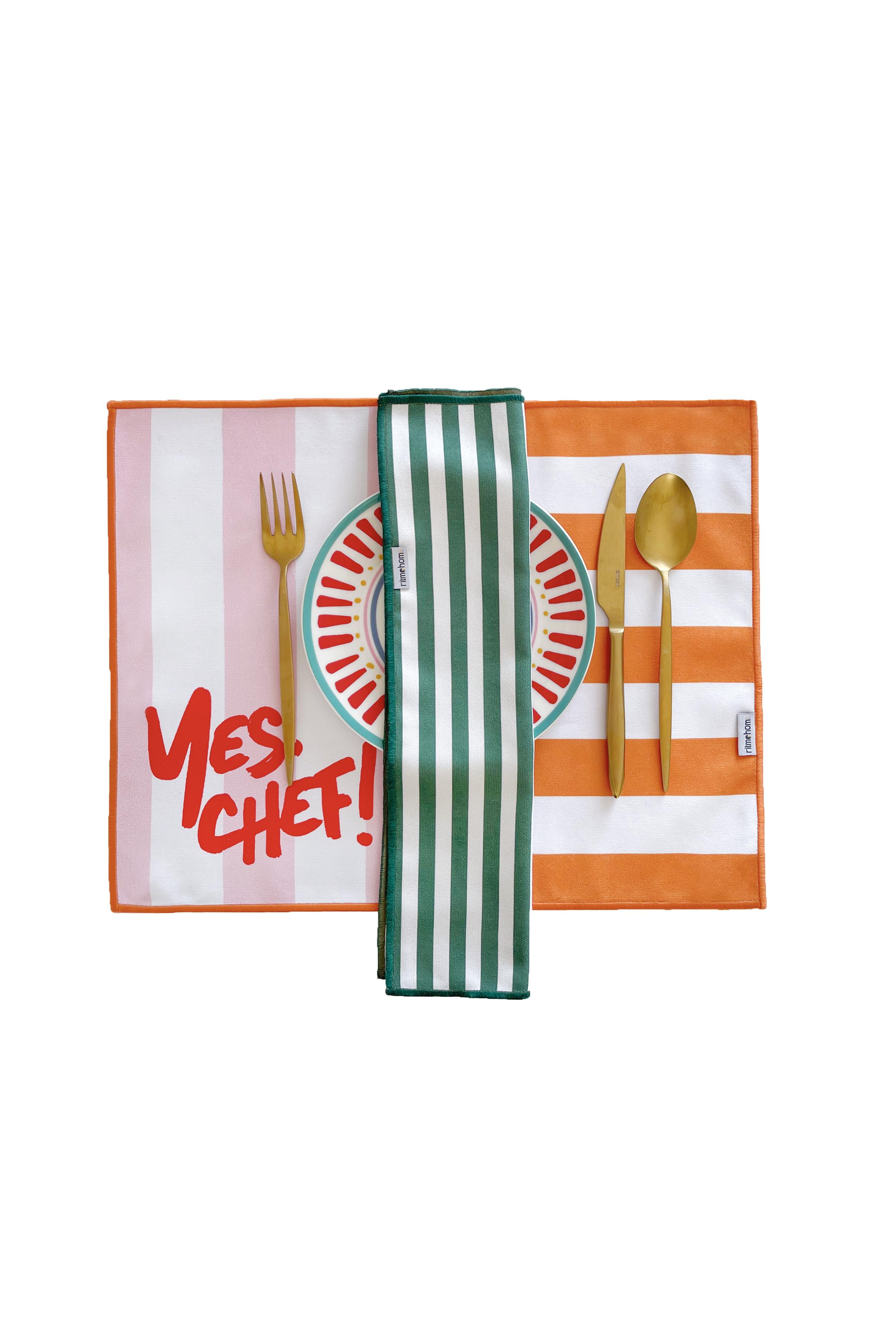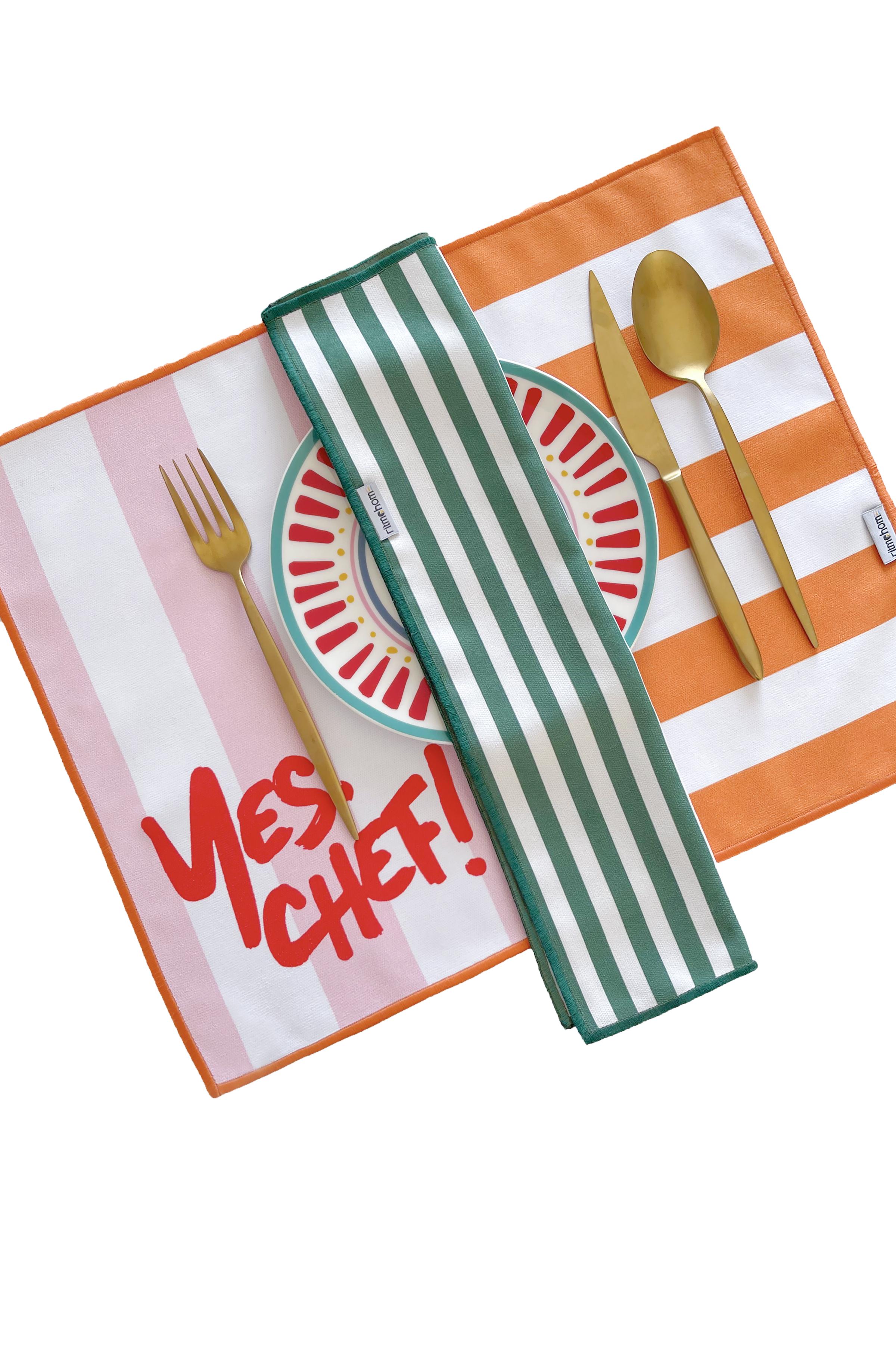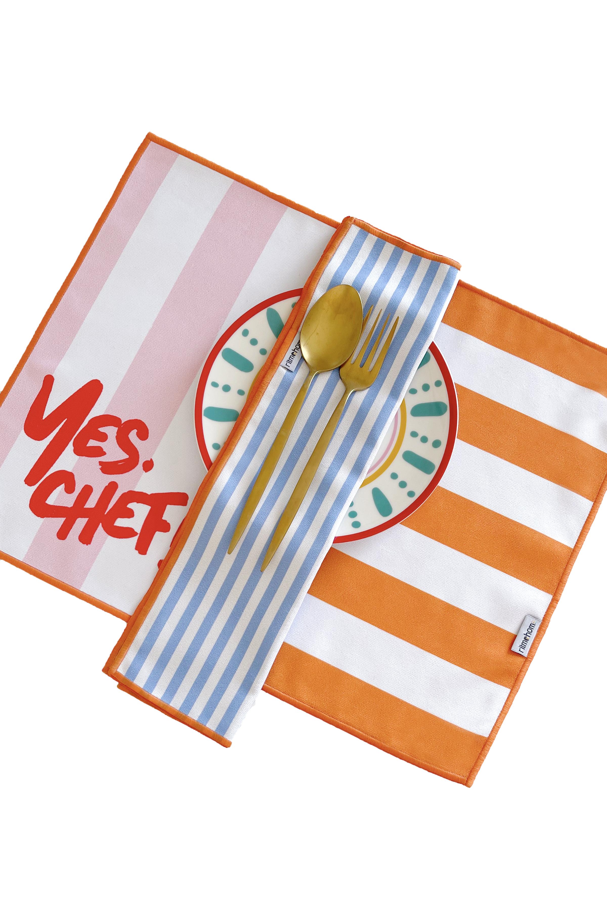 Özenle üretilen bu ürünler cesur renkleri, dinamik desenleri ve çift taraflı kullanımıyla sofralara maksimalist bir enerji katıyor.
