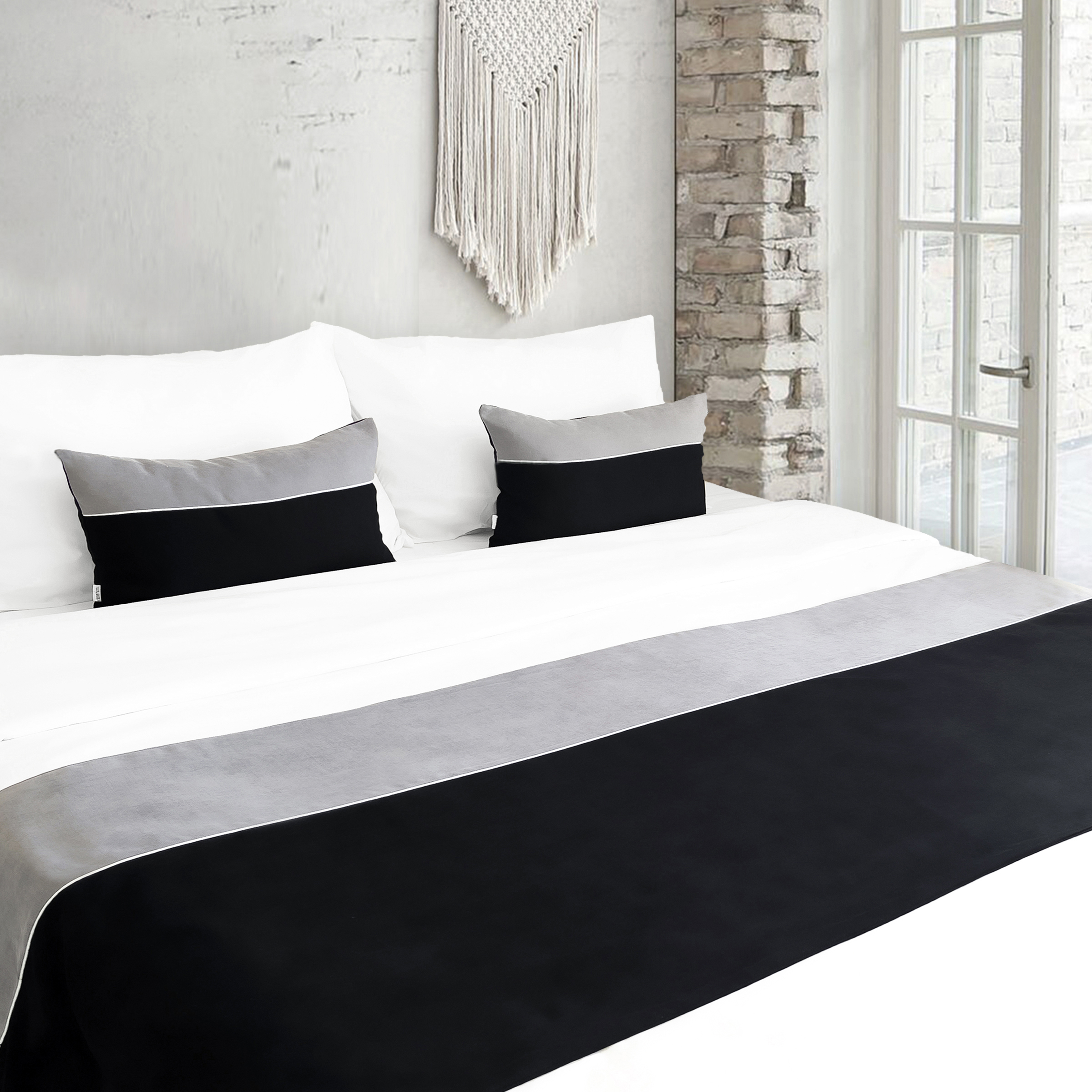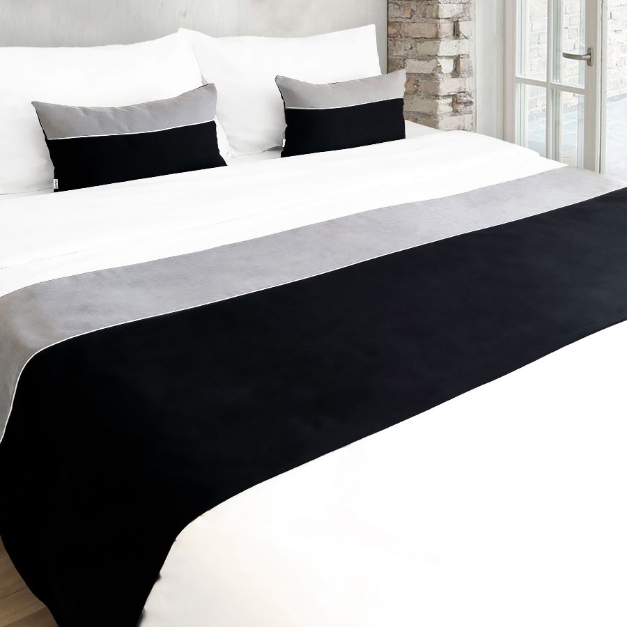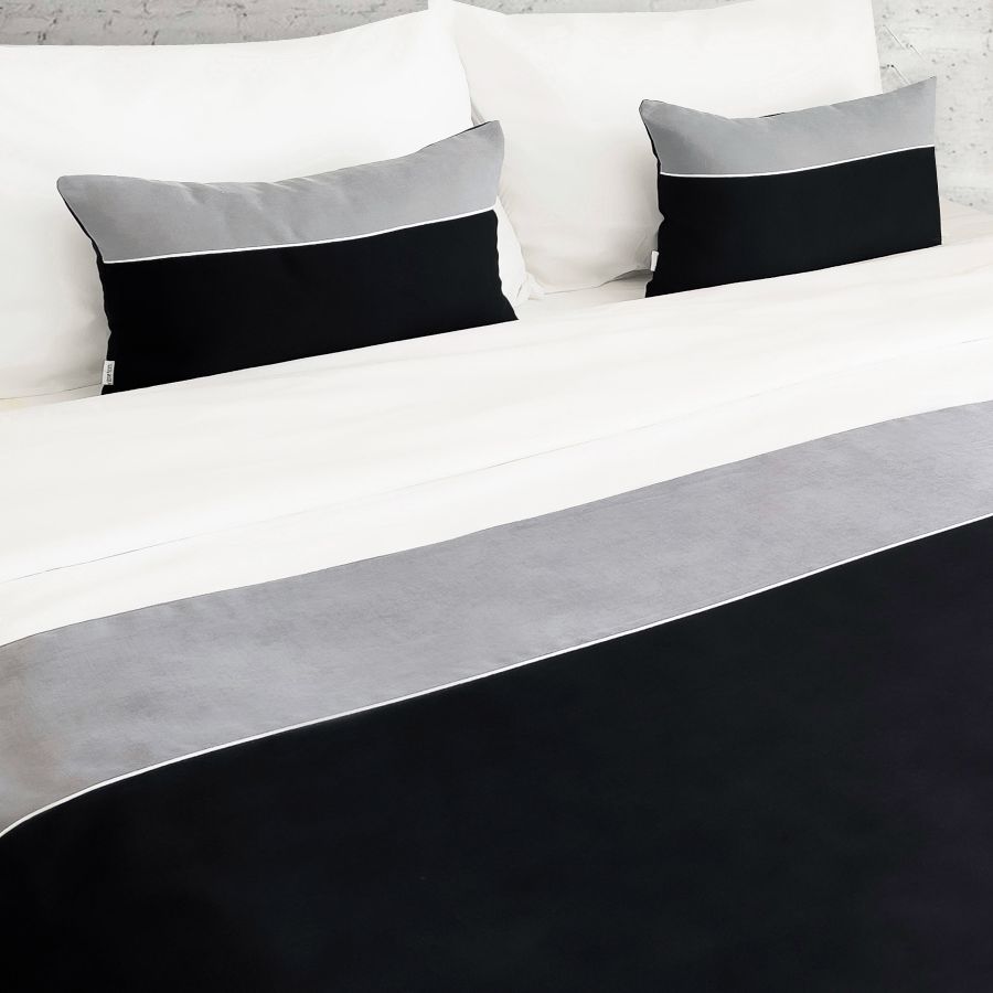 Tek Kişilik Yatak Runner Seti Biyeli Gri/Siyah