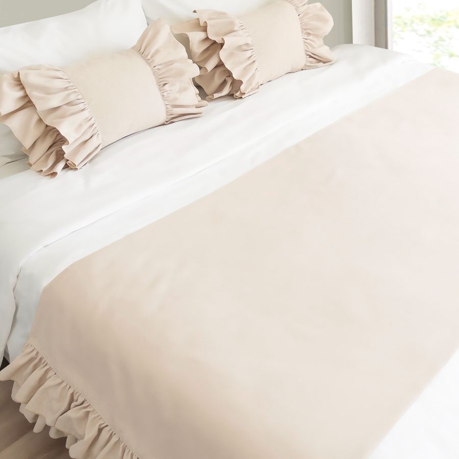 Yatak runner çift kişilik 70x180 cm ölçüsündedir. Fırfır detayları vardır.