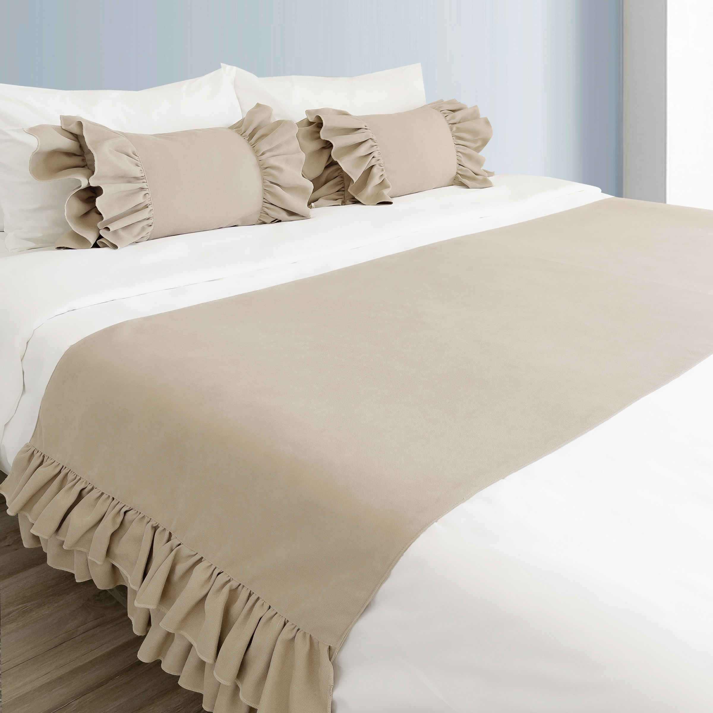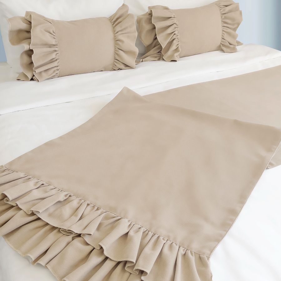 Yatak runner çift kişilik 70x180 cm ölçüsündedir. Fırfır detayları vardır.