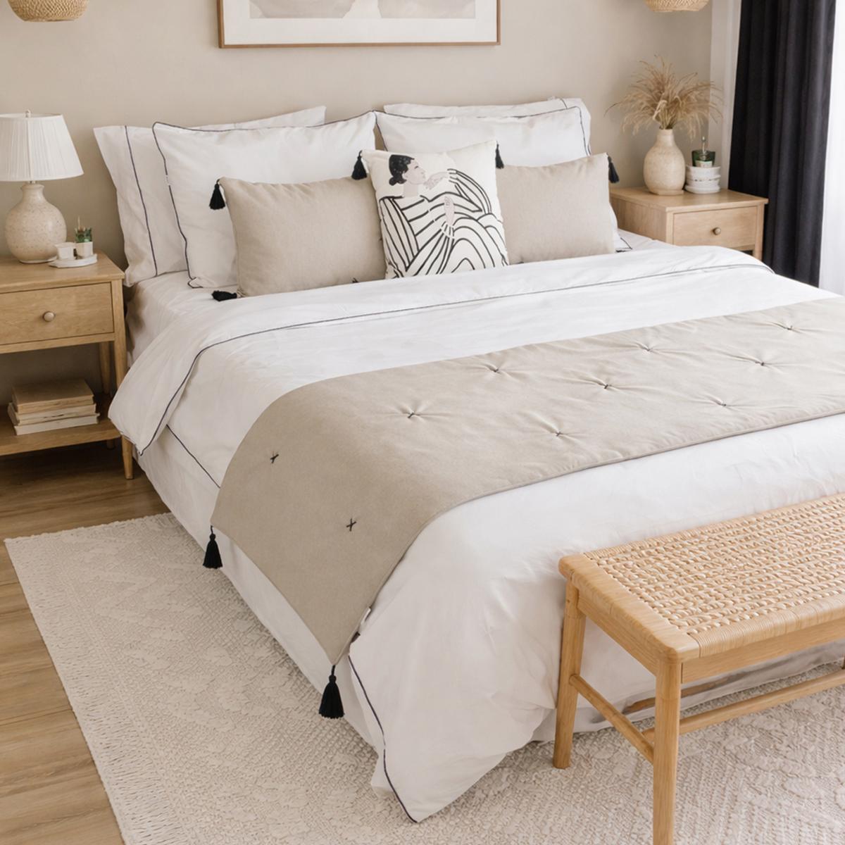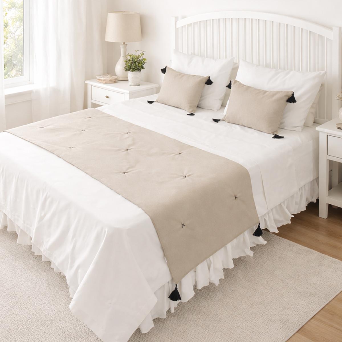 Paket içeriği: 1 adet yatak runner 2 adet kırlent kılıfı, 2 adet kırlent iç dolgusu.