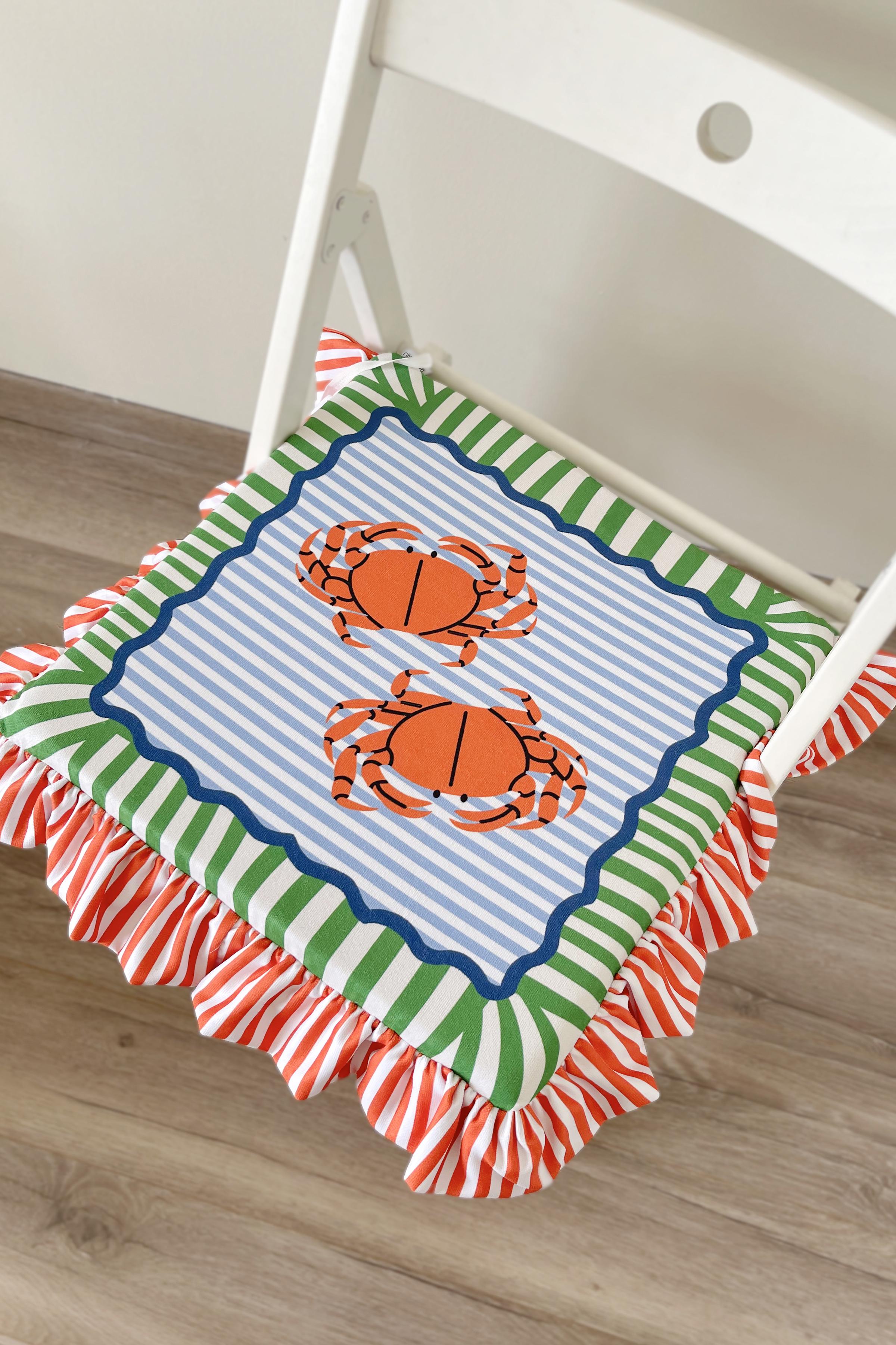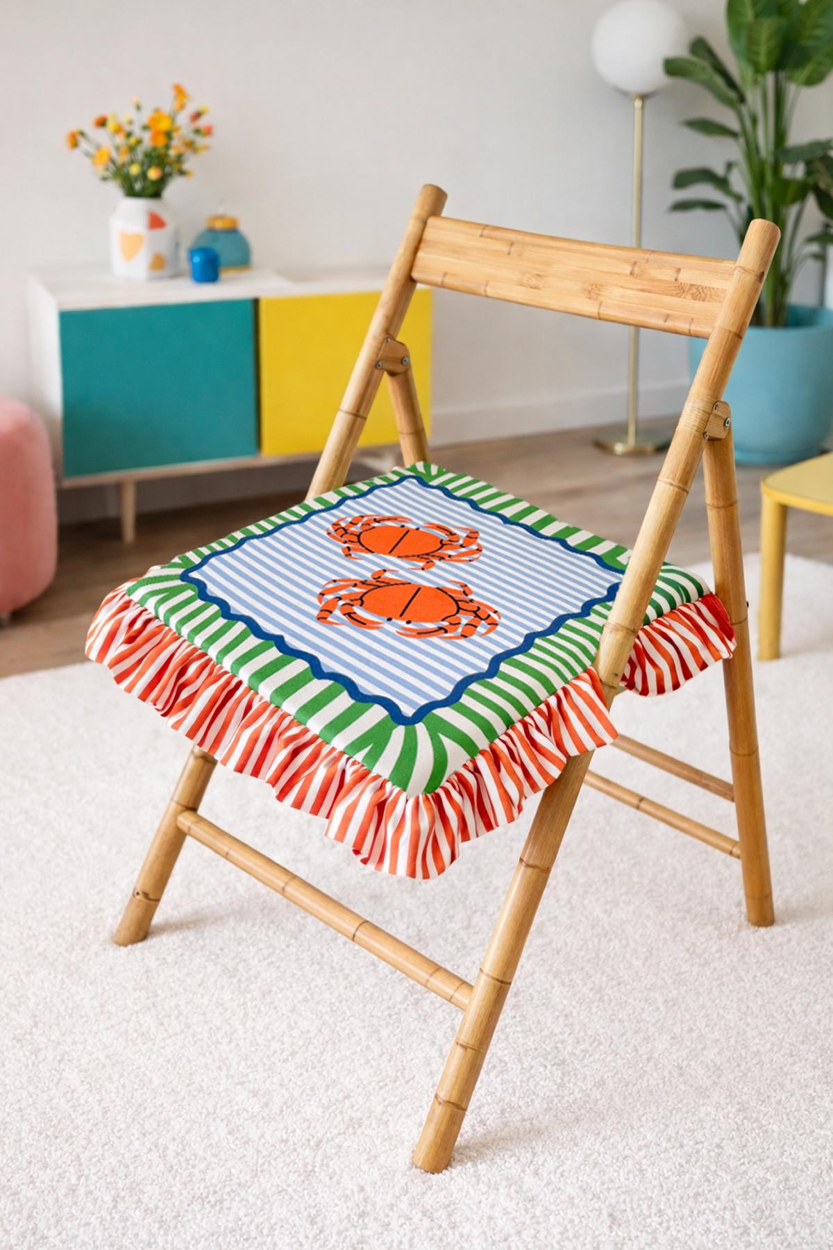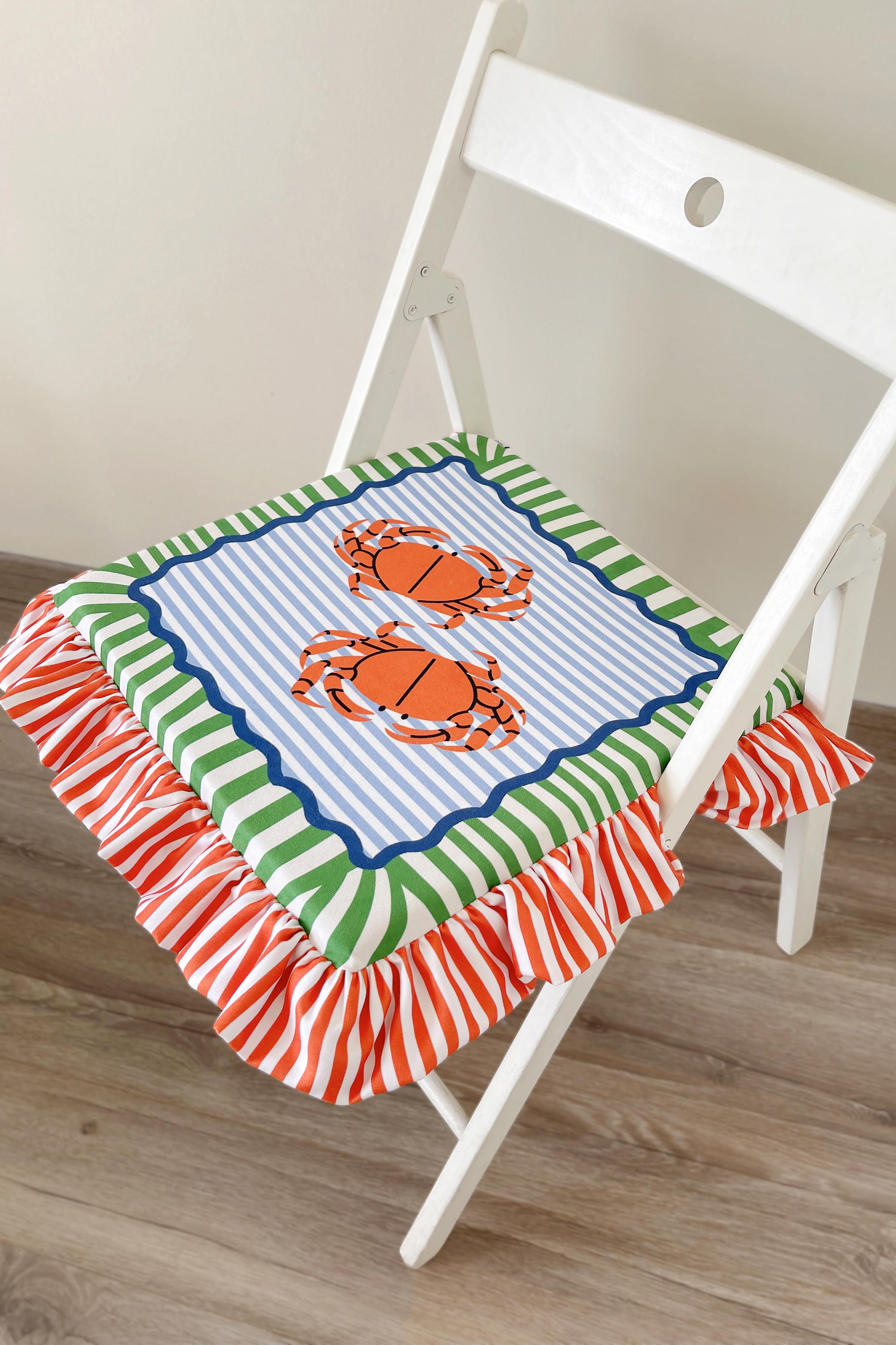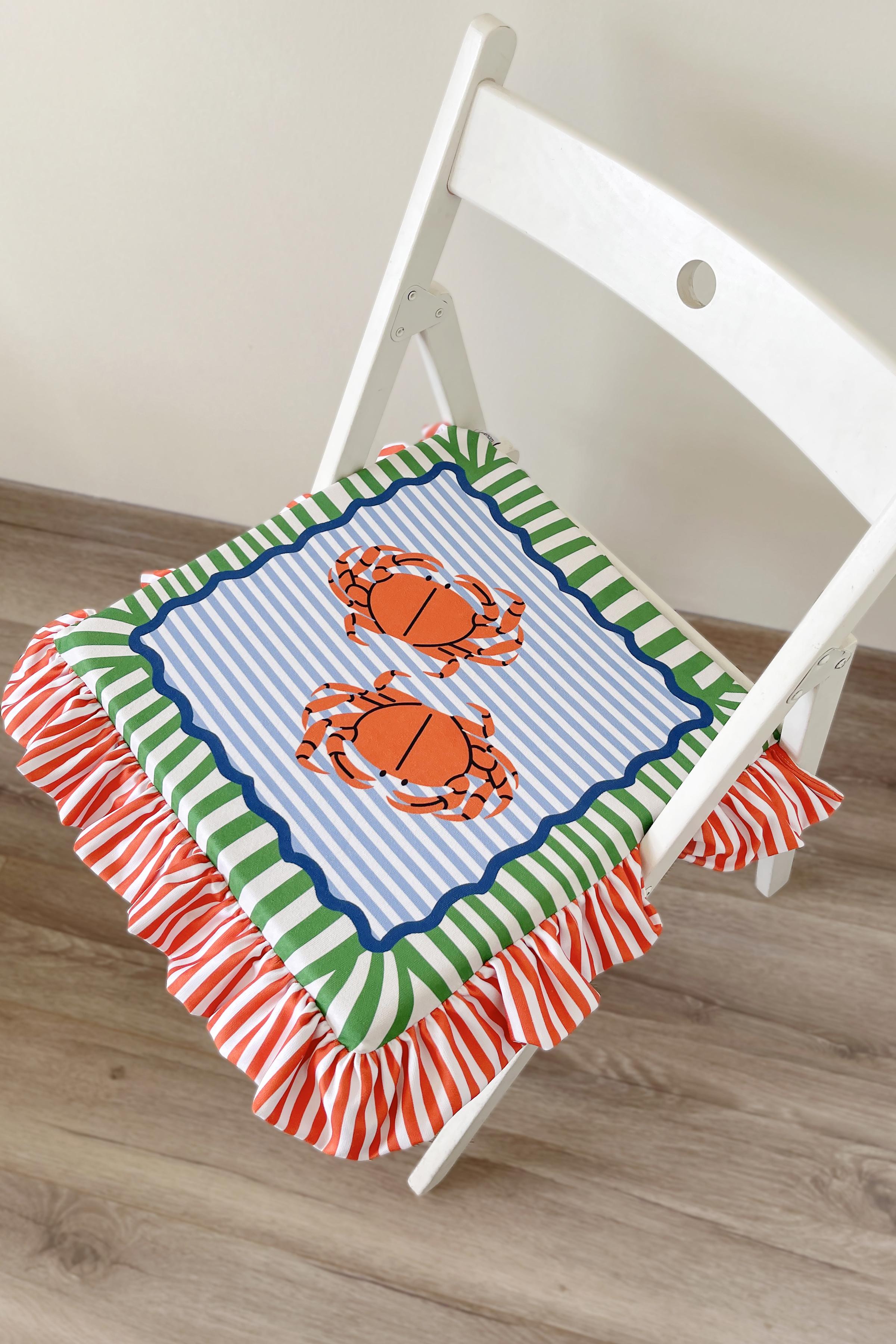 Yengeç Desenli Fırfırlı Marin Sandalye Minderi